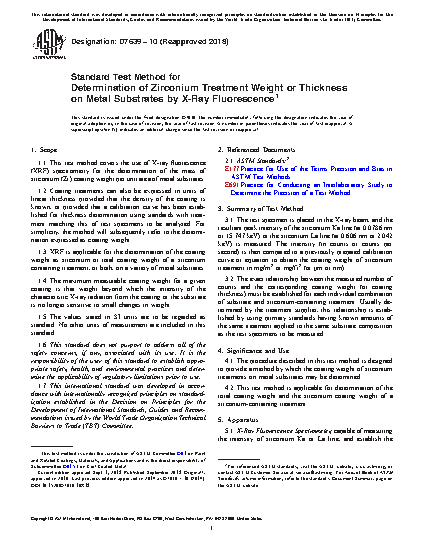 1.3 XRF is applicable for the determination of the coating weight as zirconium or total coating weight of a zirconium containing treatment, or both, on a variety of metal substrates.