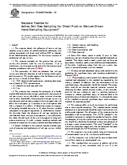 1.1 This practice details the collection of active soil gas samples using a variety of sample collection techniques with tooling associated with direct push drilling (DP) or manual-driven hand-sampling equipment, for the express purpose of conducting soil gas surveys.