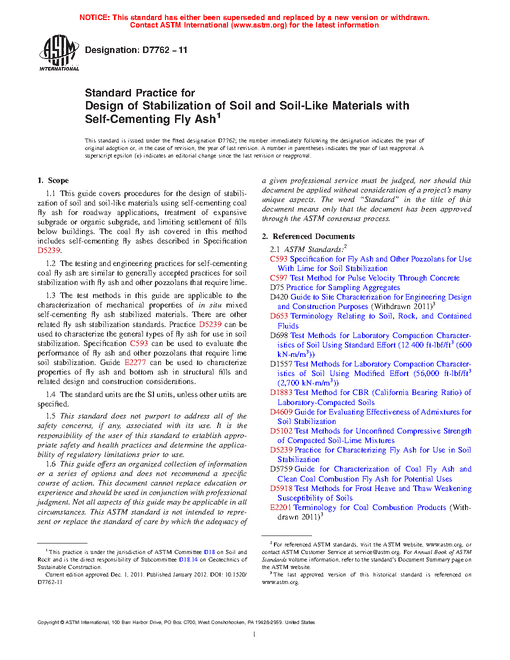 1.2 The testing and engineering practices for self-cementing coal fly ash are similar to generally accepted practices for soil stabilization with fly ash and other pozzolans that require lime.