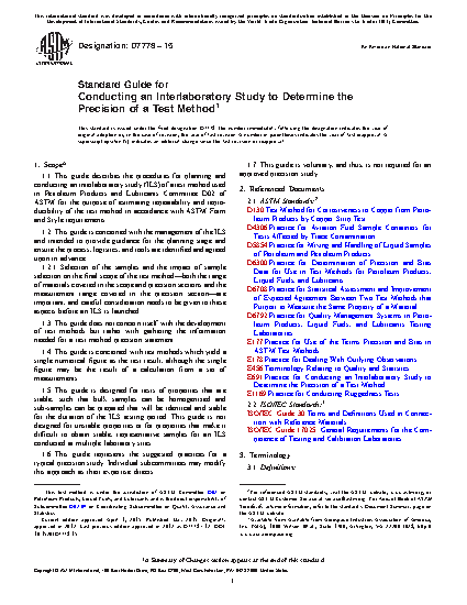1.1 This guide describes the procedures for planning and conducting an interlaboratory study (ILS) of a test method used in Petroleum Products and Lubricants Committee D02 of ASTM for the purpose of estimating repeatability and reproducibility of the test method in accordance with ASTM Form and Style requirements.