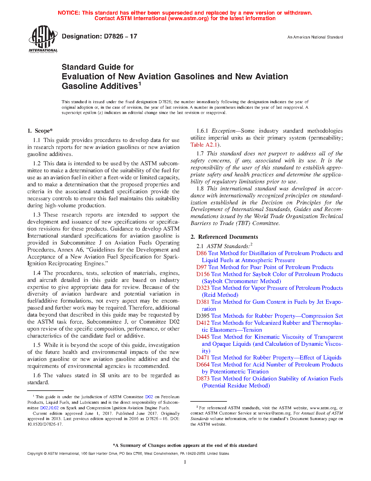 1.7 While it is beyond the scope of this guide, investigation of the future health and environmental impacts of the new aviation gasoline or new aviation gasoline additive and the requirements of environmental agencies is recommended.