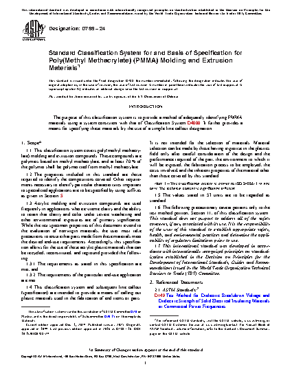 1.1 The purpose of this classification system is to provide a method of adequately identifying PMMA materials using a system consistent with that of Classification System D4000. It further provides a means for specifying these materials by the use of a simple line callout designation.