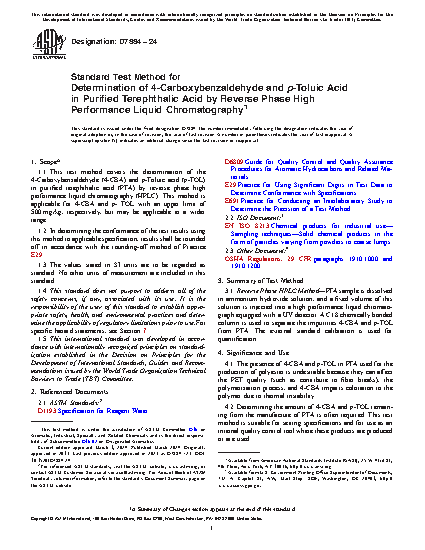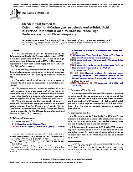 4.2 Determining the amount of 4-CBA and p-TOL remaining from the manufacture of PTA is often required. This test method is suitable for setting specifications and for use as an internal quality control tool where these products are produced or are used.