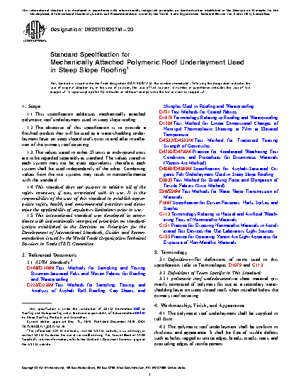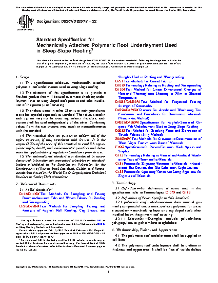 1.1 This specification addresses mechanically attached polymeric roof underlayment used in steep slope roofing.