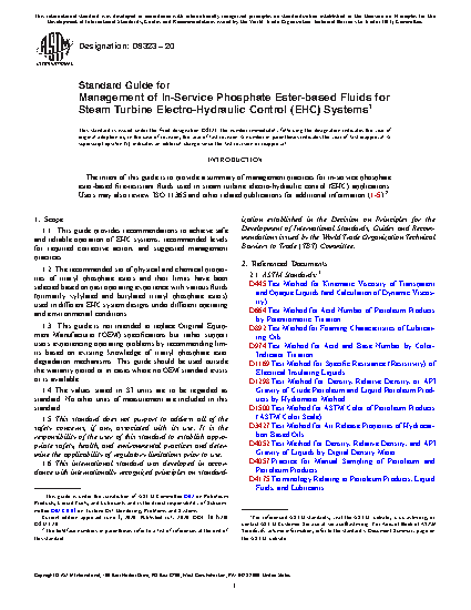 4.1 This guide outlines the requirements for monitoring the performance of in-service fire-resistant fluids based on triaryl phosphate esters to accomplish safe and reliable operation of turbine electro-hydraulic control systems.