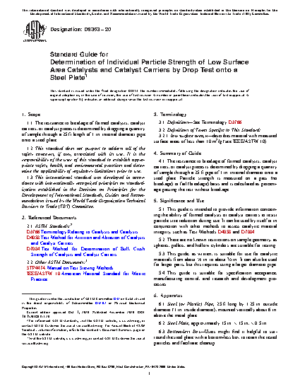 5.1 This guide is intended to provide information concerning the ability of formed catalysts or catalyst carriers to resist particle size reduction during use. It can be used by itself or in conjunction with other methods to assess catalytic material integrity, such as Test Methods D4058 and D7084.