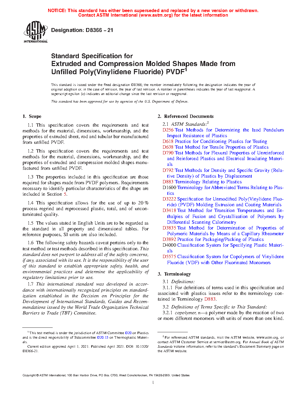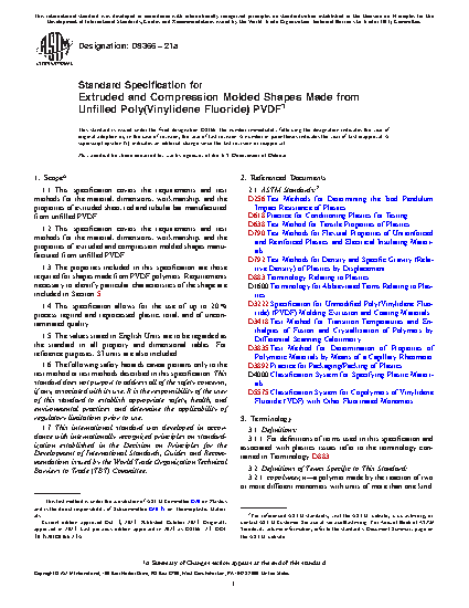 1.3 The properties included in this specification are those required for shapes made from PVDF polymers. Requirements necessary to identify particular characteristics of the shape are included in Section 5.