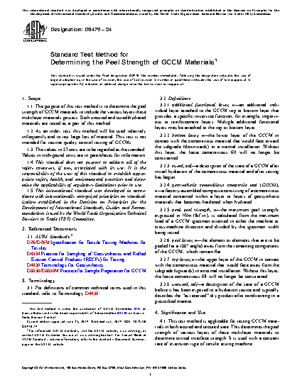 4.2 The peel strength provides a measure of the strength of the connection between the top and bottom layers due to any linking elements present between them (such as connecting fibers/yarns or other linking elements), or the strength of the connection between the additional functional layers attached to the top or bottom layer that are necessary for the GCCM to function as a composite. In particular: