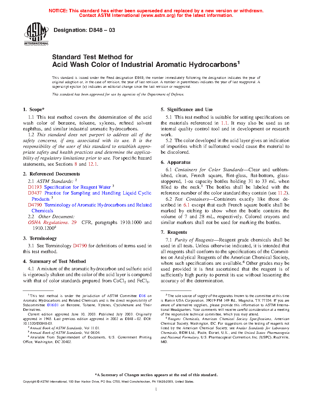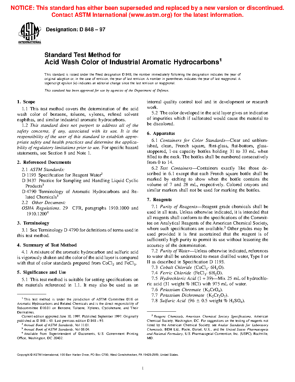 Standard Test Method for Acid Wash Color of Industrial Aromatic Hydrocarbons