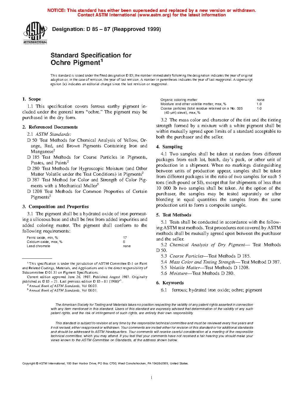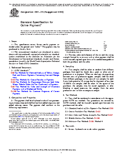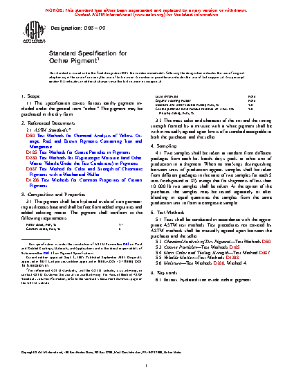 1.1 This specification covers ferrous earthy pigment included under the general term "ochre." The pigment may be purchased in the dry form.