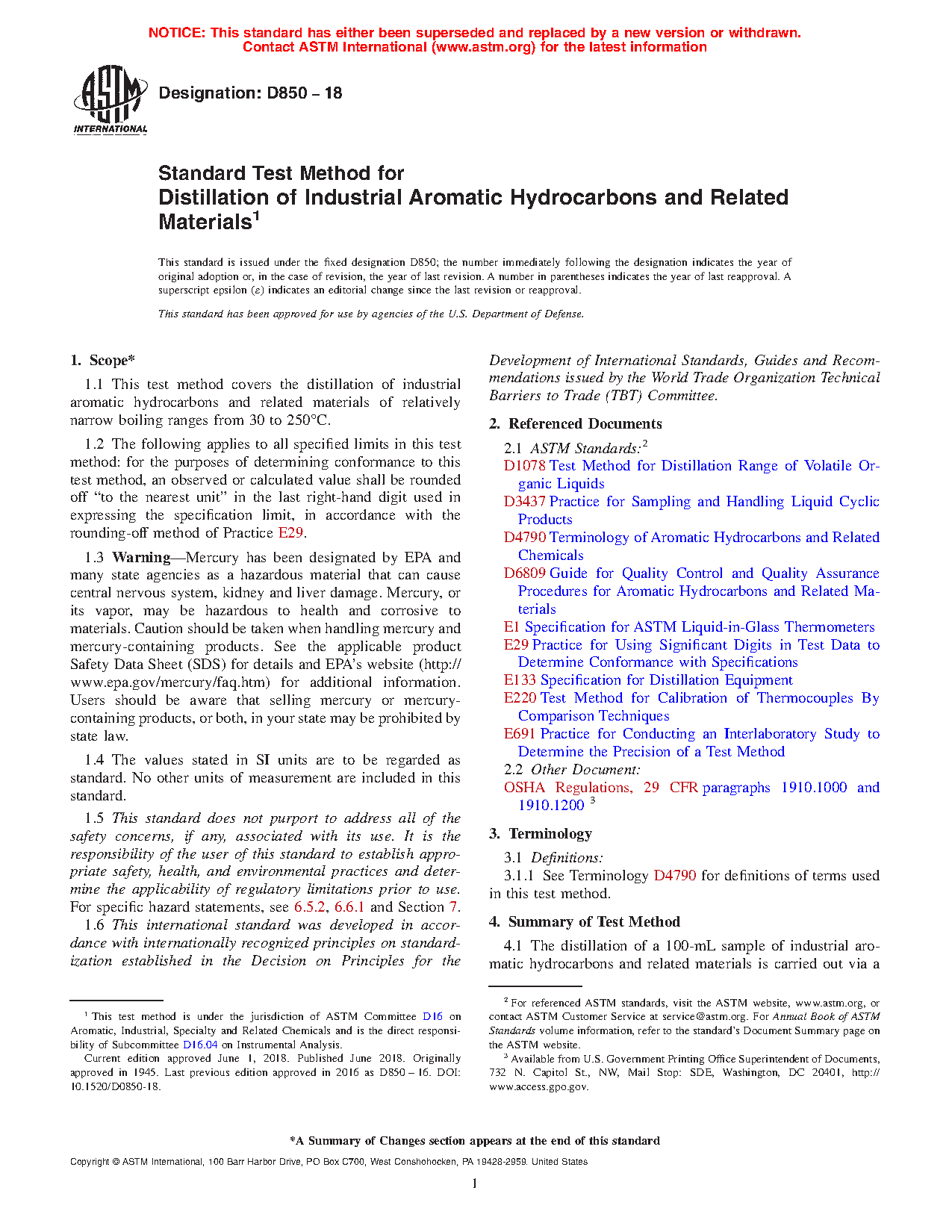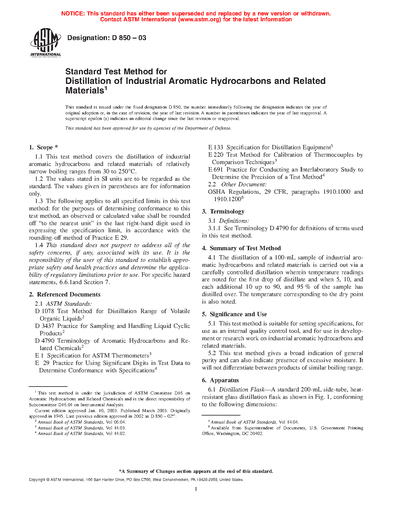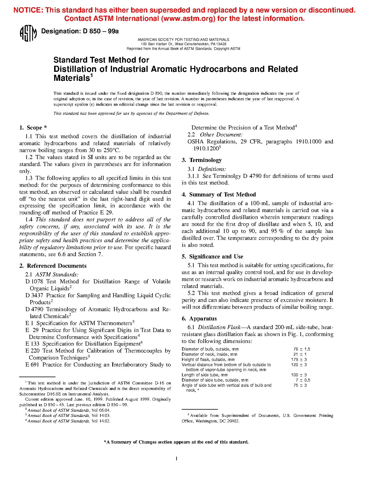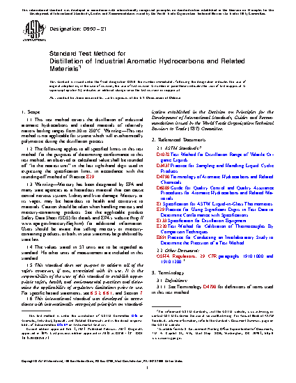 1.1 This test method covers the distillation of industrial aromatic hydrocarbons and related materials of relatively narrow boiling ranges from 30 °C to 250 °C. Warning—This test method is not applicable for styrene which will exothermically polymerize during the distillation process.