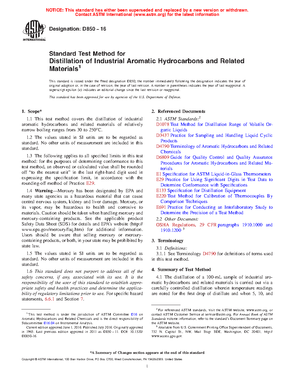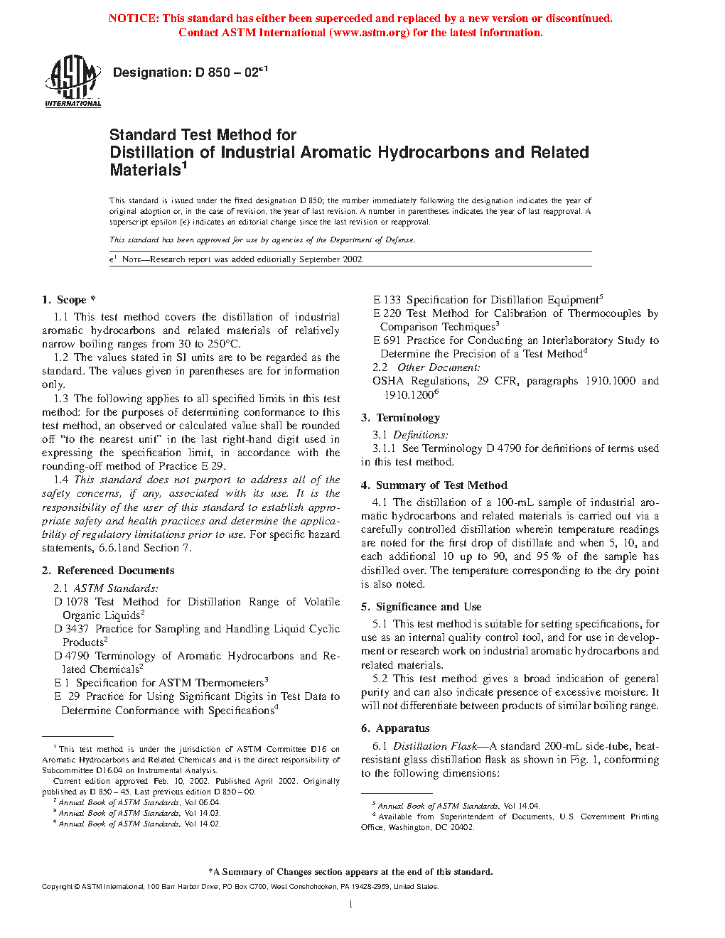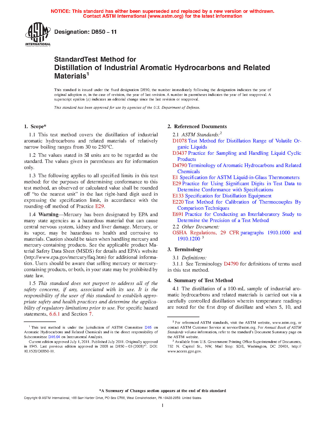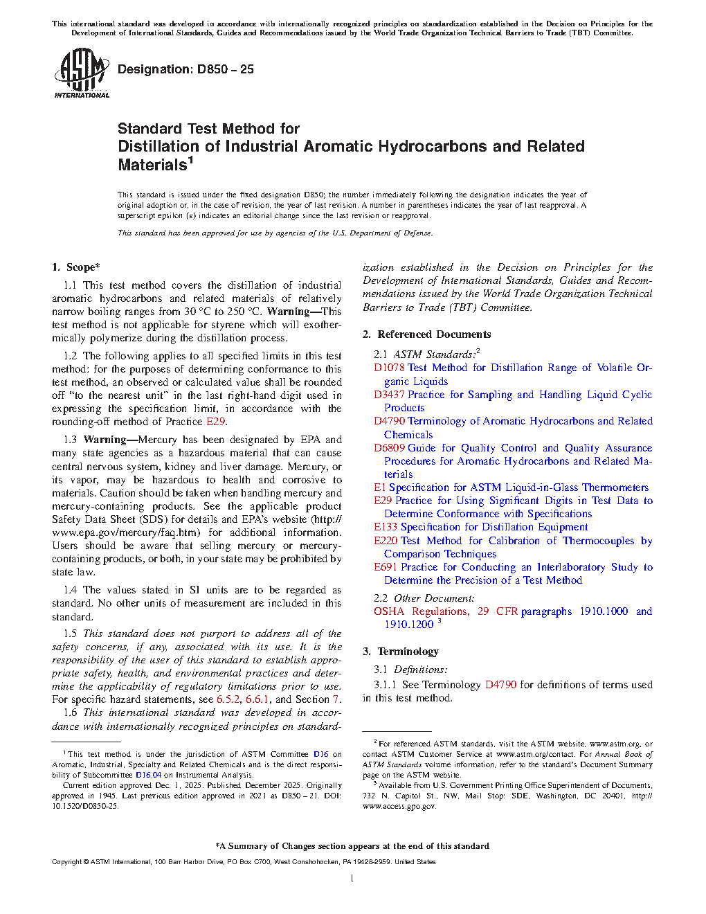 1.1 This test method covers the distillation of industrial aromatic hydrocarbons and related materials of relatively narrow boiling ranges from 30 °C to 250 °C. Warning—This test method is not applicable for styrene which will exothermically polymerize during the distillation process.