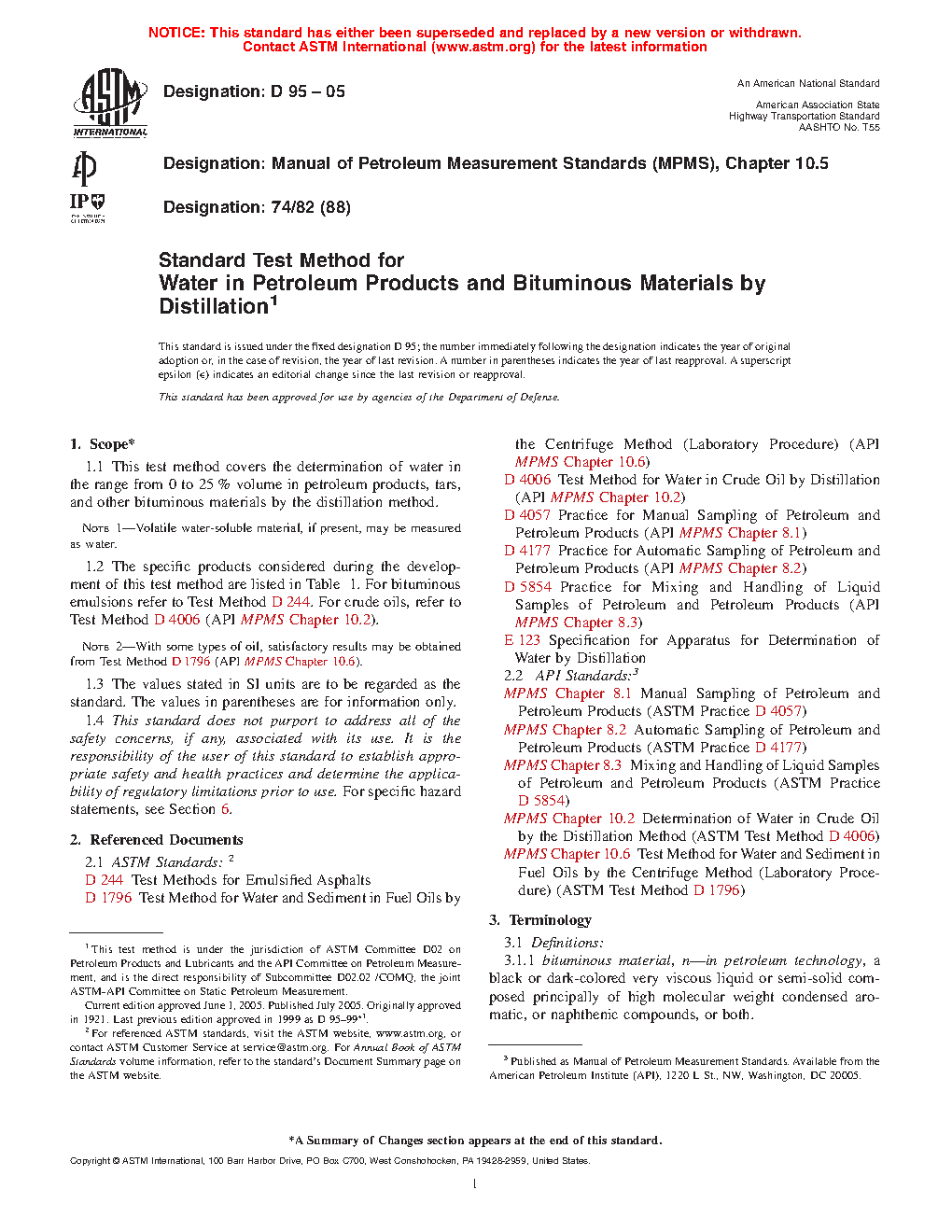 ASTM D95-23e1