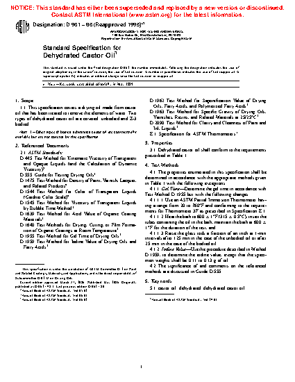 Standard Specification for Dehydrated Castor Oil (Withdrawn 2007)
