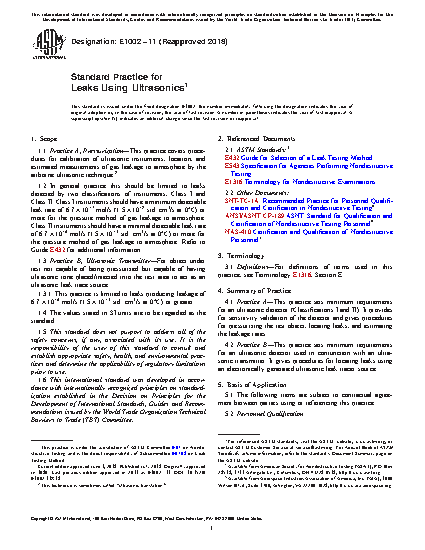1.2 In general practice this should be limited to leaks producing leakage of 4.5 X 10 -7 m /s (10 atm[dot]cm /s at 0°C) or more. Refer to Guide E 432 for additional information.