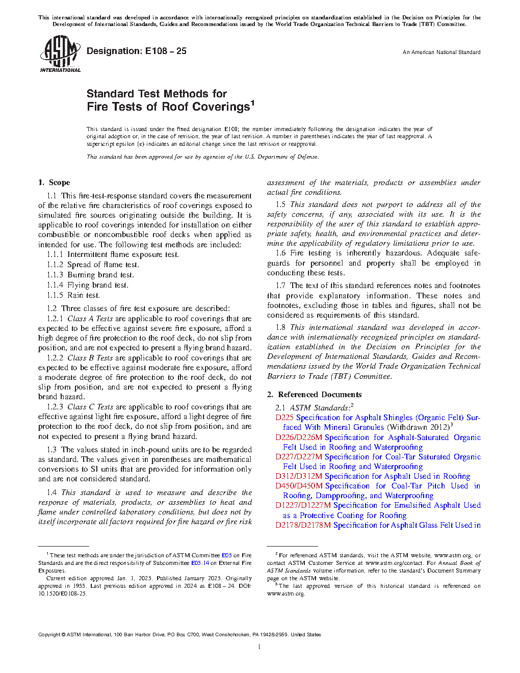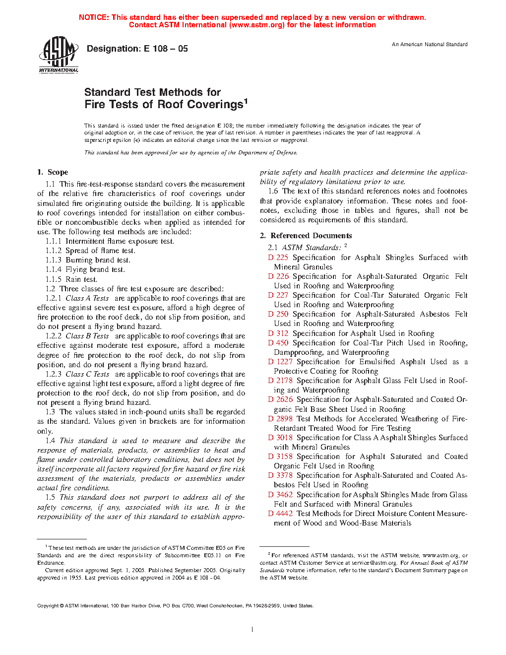 4.3 These test methods also provide criteria to determine if the roof covering material will develop flying burning material, identified as flying brands, when subjected to a 12 mph (5.3 m/s) wind during the simulated fire exposure tests.
