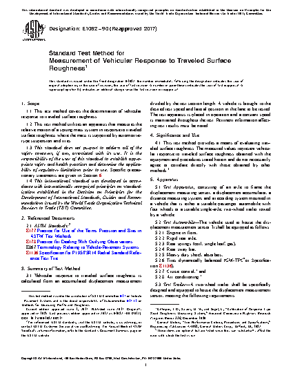 1.1 This test method covers the determination of vehicular response to traveled surface roughness.