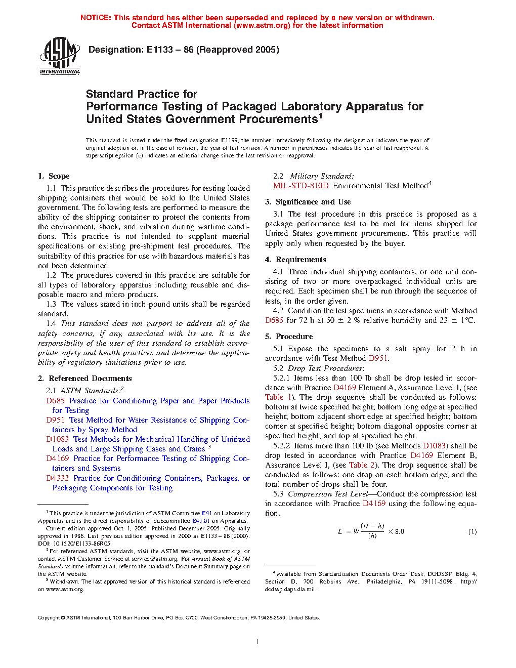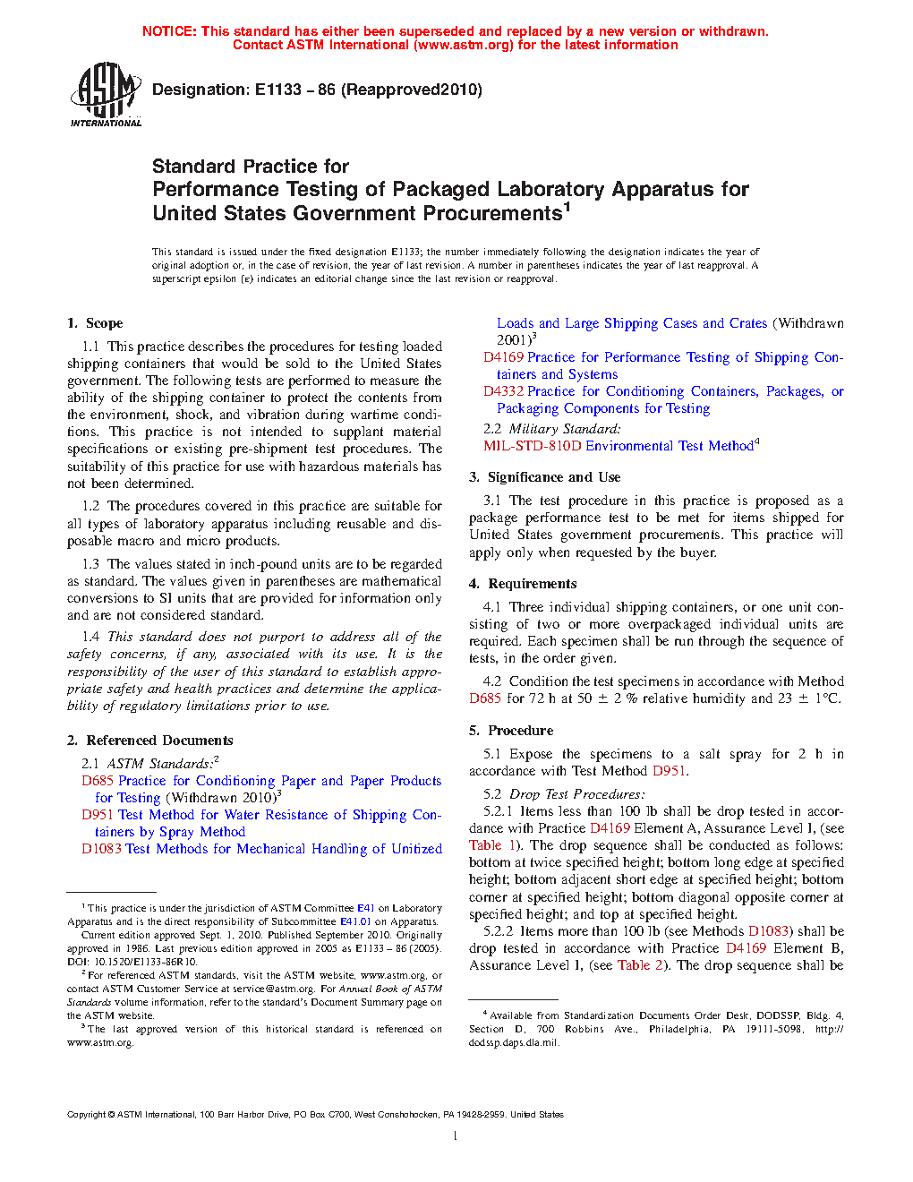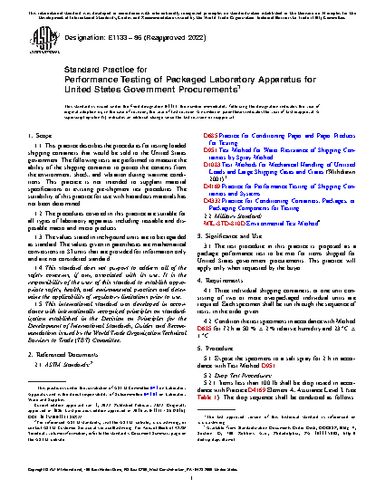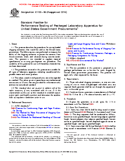 The test procedure in this practice is proposed as a package performance test to be met for items shipped for United States government procurements. This practice will apply only when requested by the buyer.