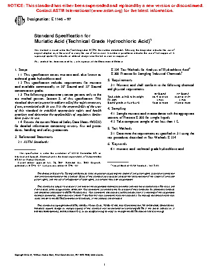 1.1 This specification covers muriatic acid, also known as technical grade hydrochloric acid.