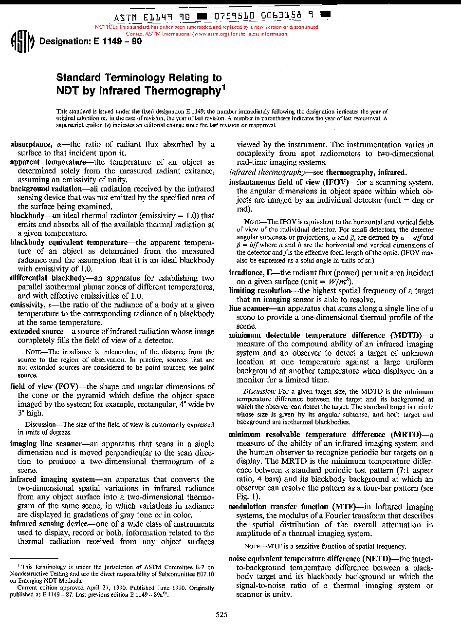 Definitions of Terms Relating to NDT by Infrared Thermography (Withdrawn 1991)
