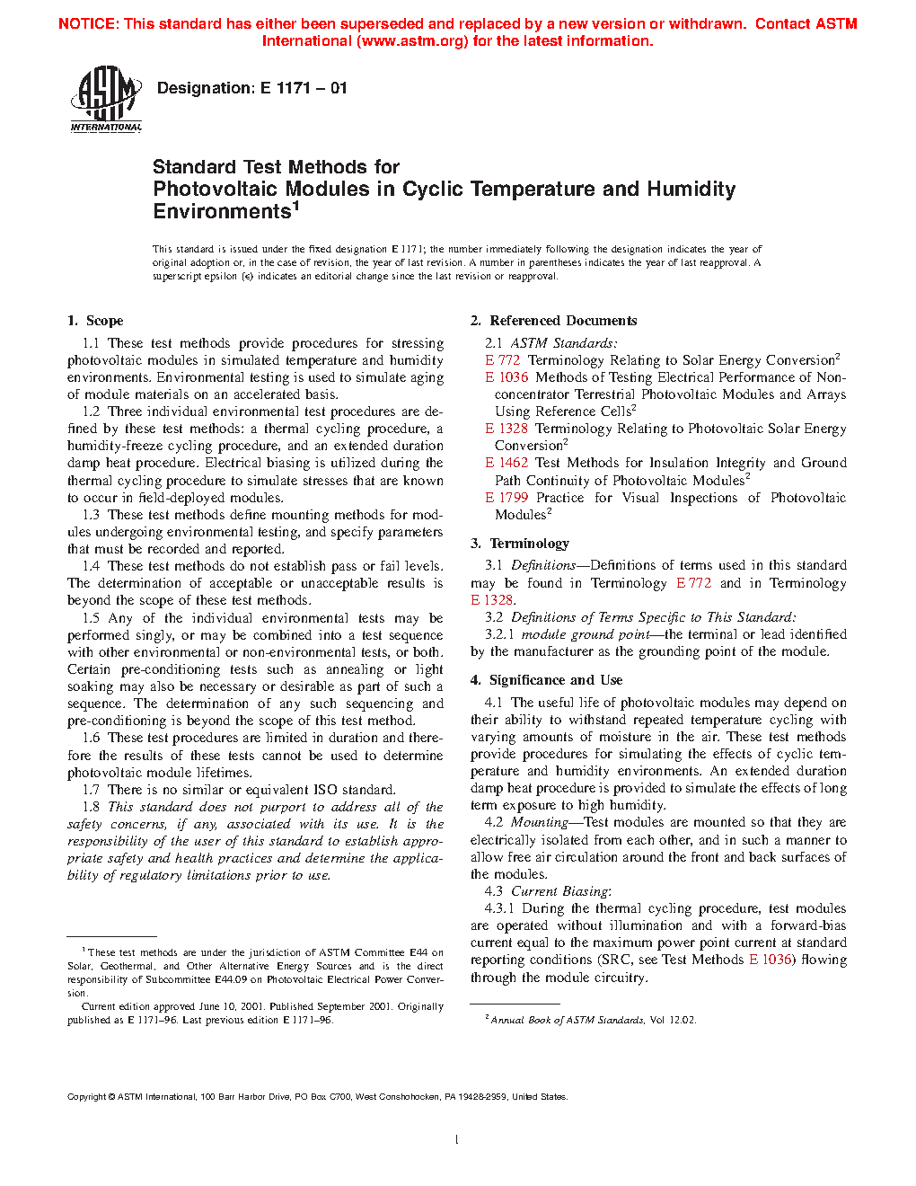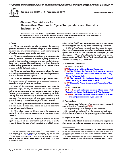 1.6 These test procedures are limited in duration and therefore the results of these tests cannot be used to determine photovoltaic module lifetimes.