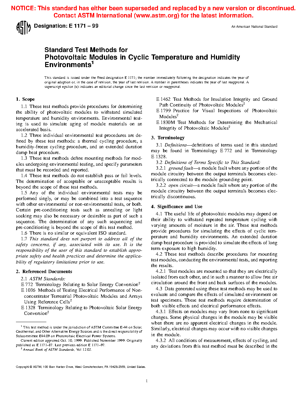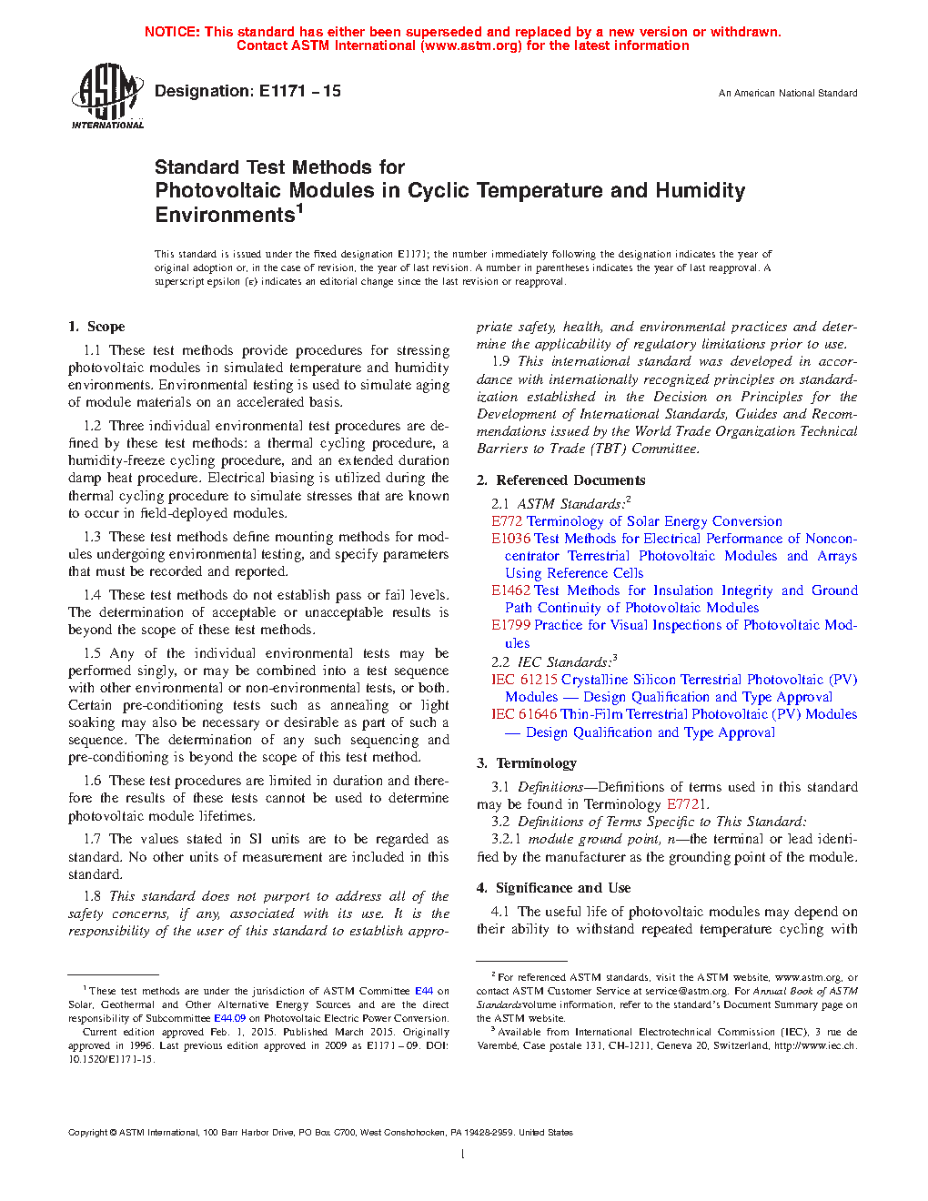 1.6 These test procedures are limited in duration and therefore the results of these tests cannot be used to determine photovoltaic module lifetimes.
