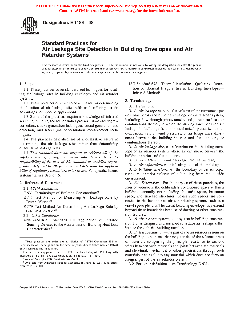 1.1 These practices cover standardized techniques for locating air leakage sites in building envelopes and air barrier systems.