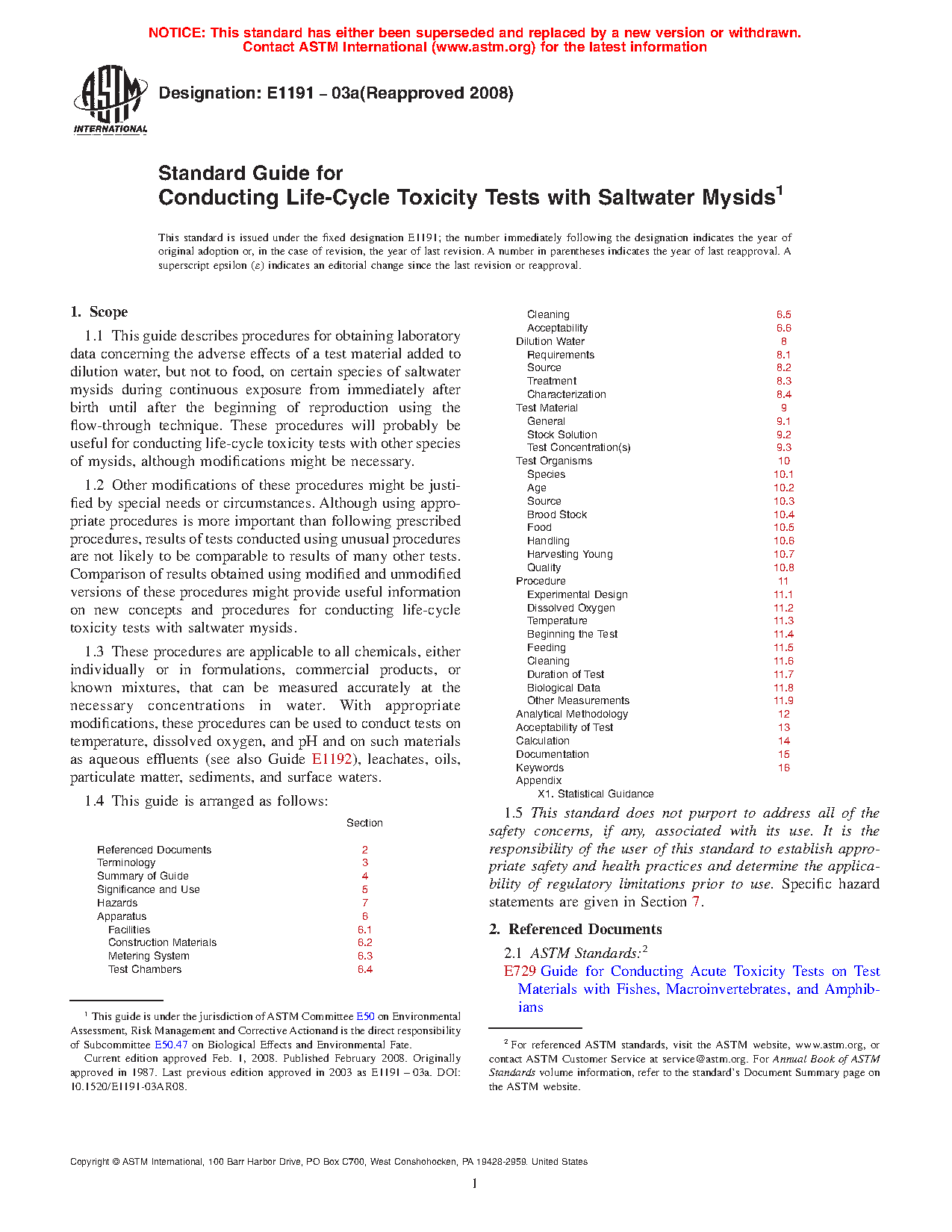 5.4 Results of life-cycle tests with mysids might be an important consideration when assessing the hazards of materials to aquatic organisms (see Guide E1023) or when deriving water quality criteria for aquatic organisms (1).4