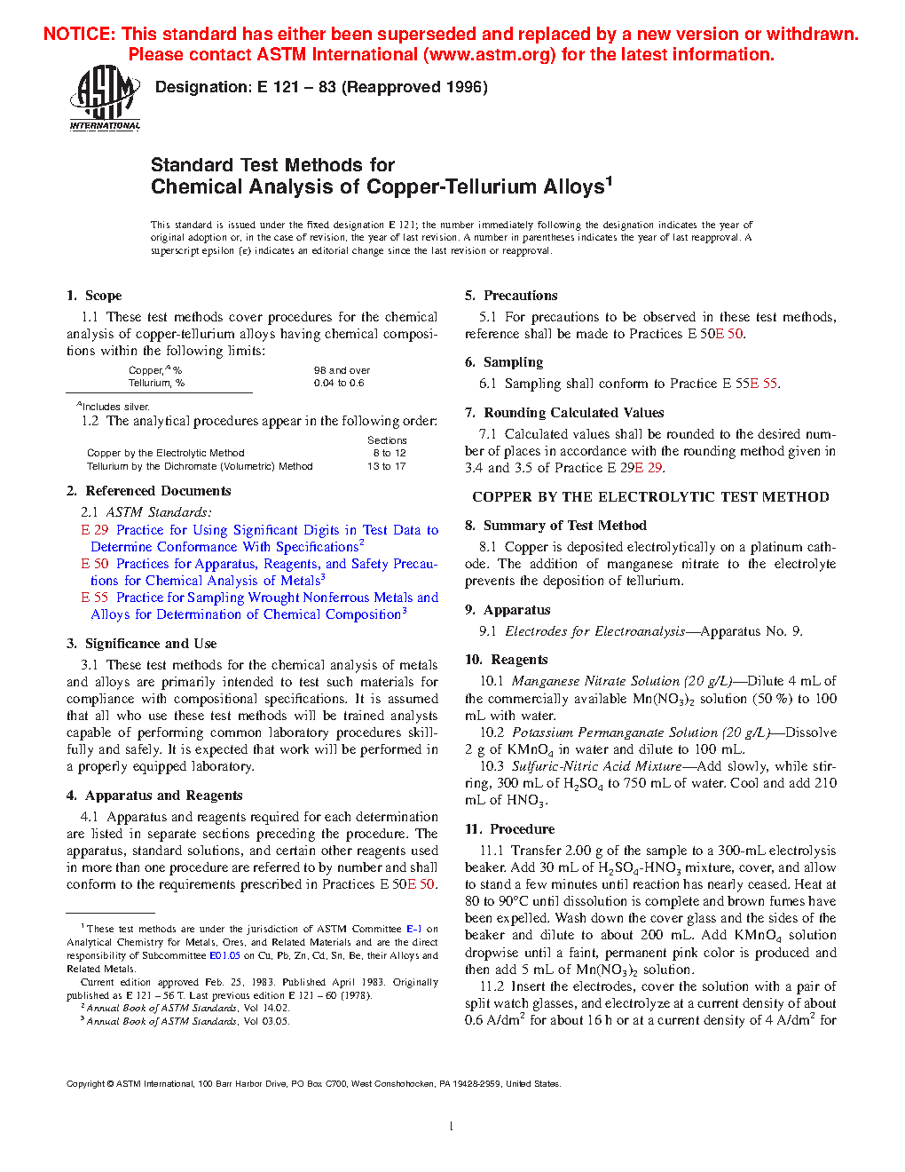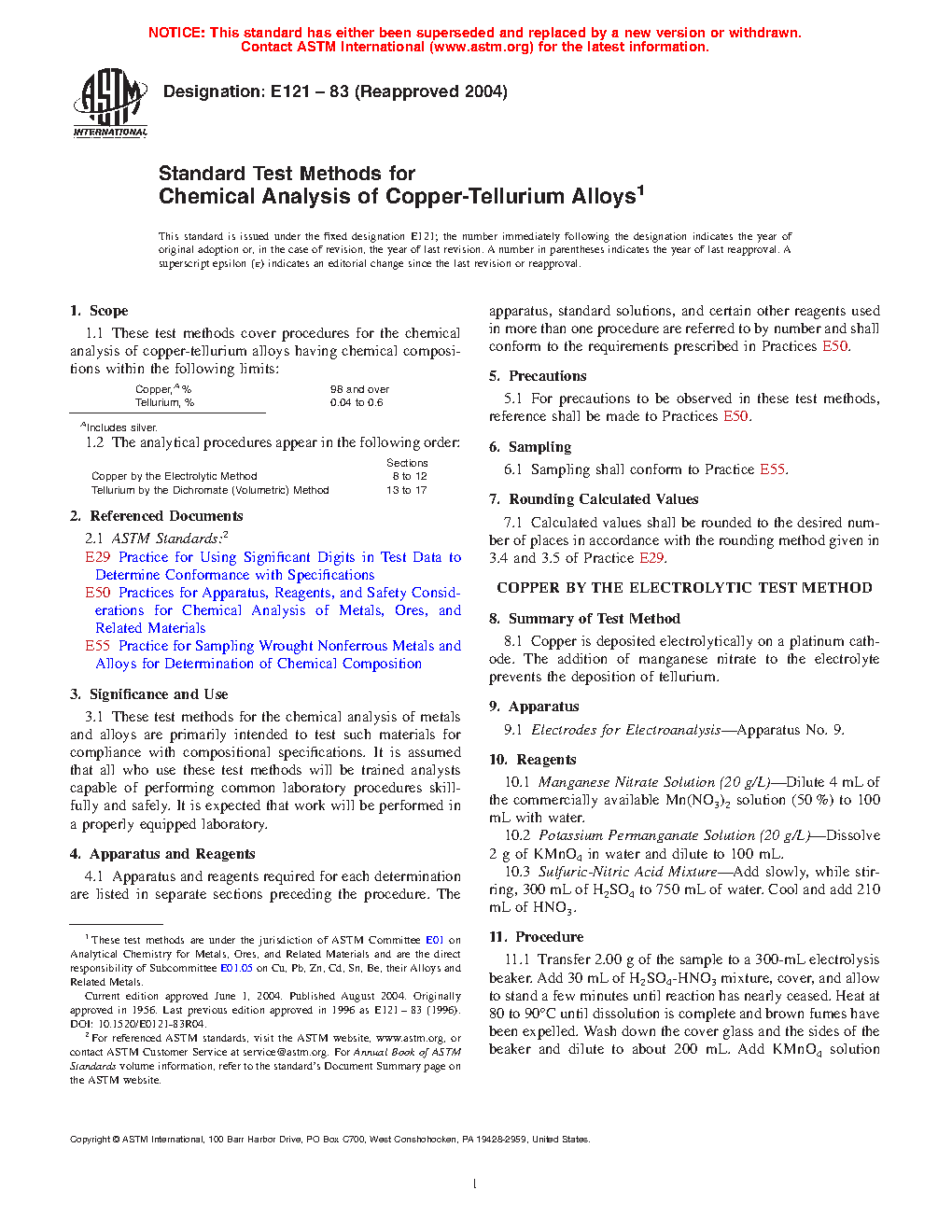 Standard Test Methods for Chemical Analysis of Copper-Tellurium Alloys