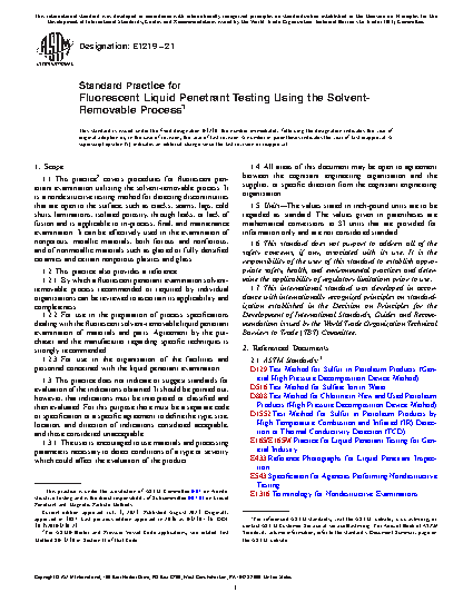 1.2.2 For use in the preparation of process specifications dealing with the fluorescent solvent-removable liquid penetrant examination of materials and parts. Agreement by the purchaser and the manufacturer regarding specific techniques is strongly recommended.