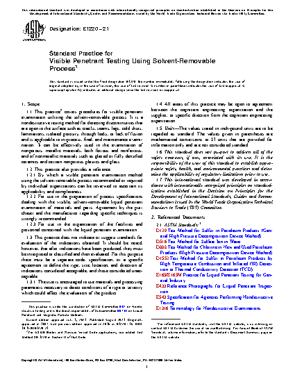 1.2.2 For use in the preparation of process specifications dealing with the visible, solvent-removable liquid penetrant examination of materials and parts. Agreement by the purchaser and the manufacturer regarding specific techniques is strongly recommended.