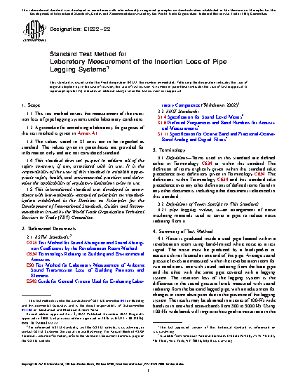 1.1 This test method covers the measurement of the insertion loss of pipe lagging systems under laboratory conditions.