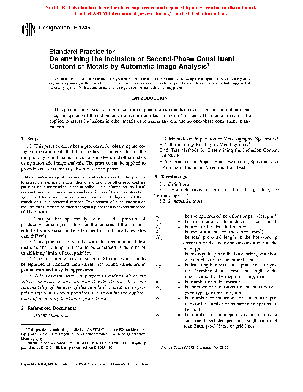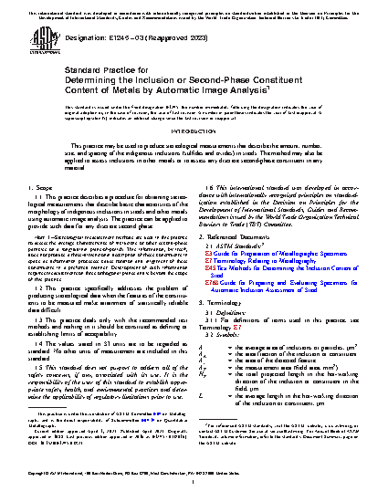 5.1 This practice is used to assess the indigenous inclusions or second-phase constituents of metals using basic stereological procedures performed by automatic image analyzers.