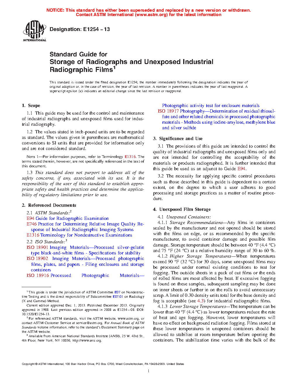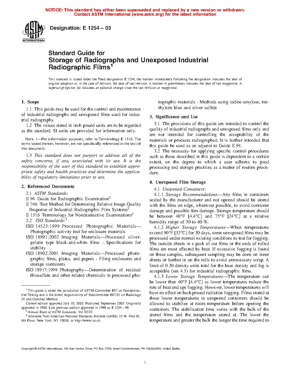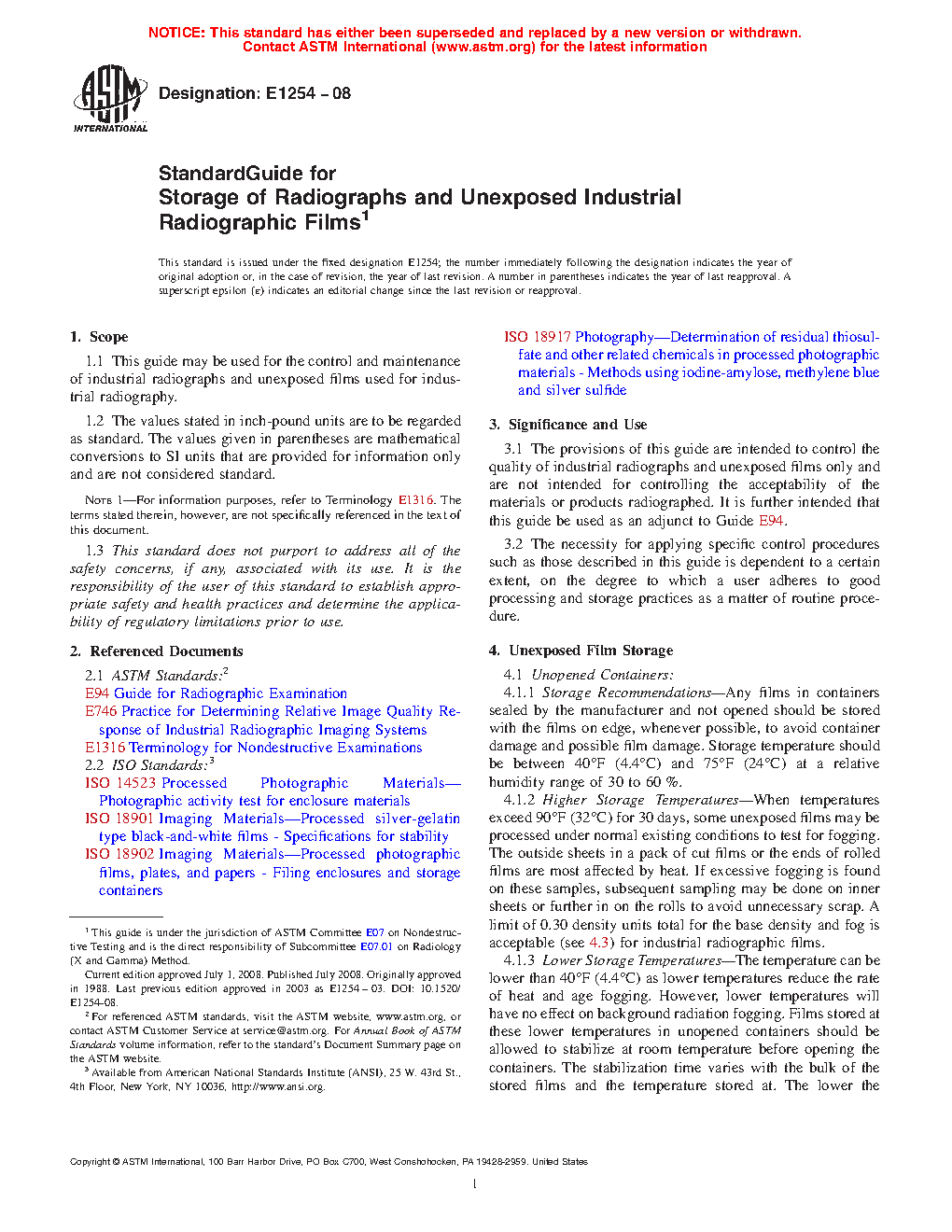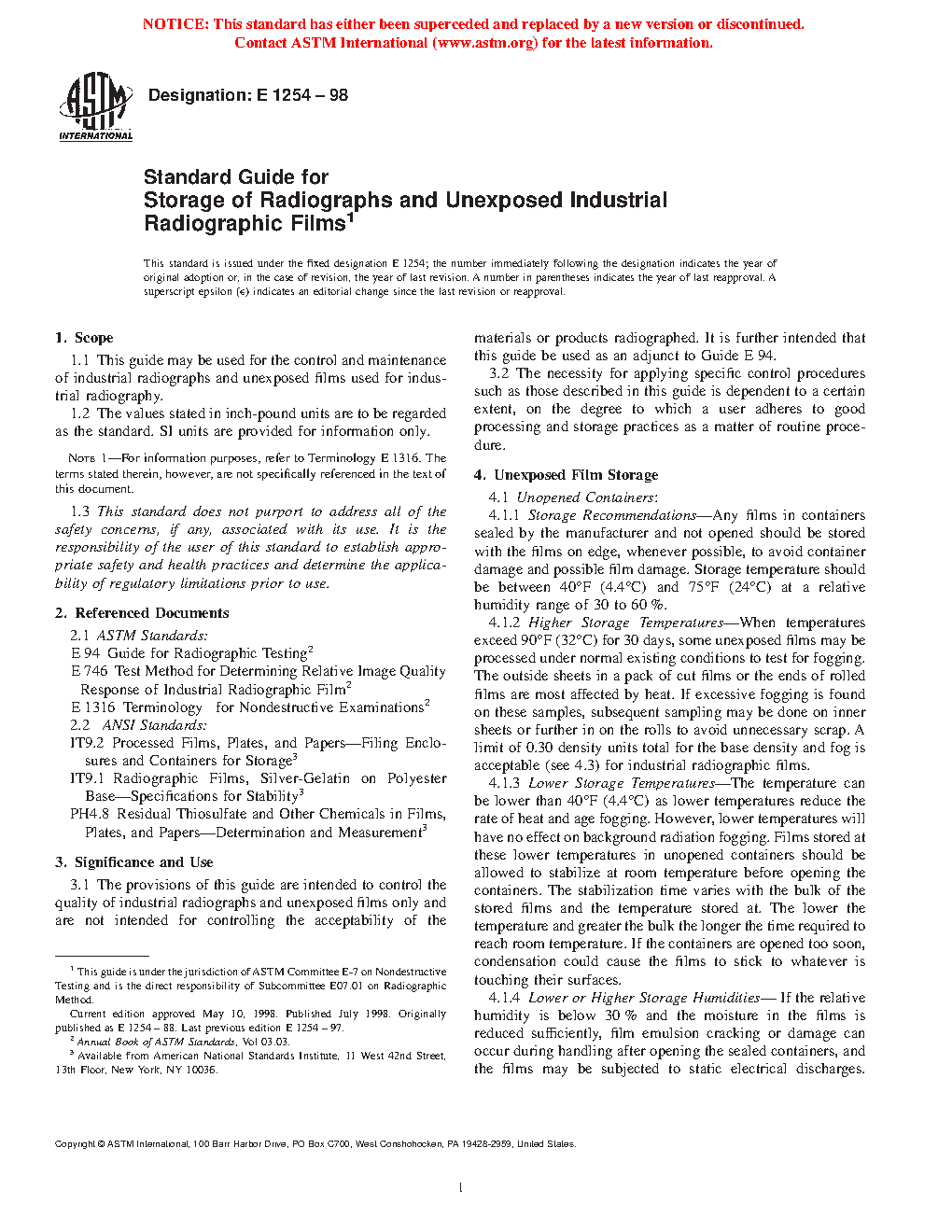 1.1 This guide may be used for the control and maintenance of industrial radiographs and unexposed films used for industrial radiography.