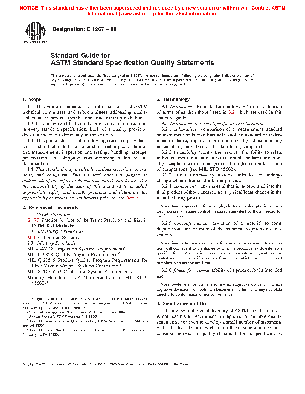 1.2 It is recognized that quality provisions are not required in every standard specification. Lack of a quality provision does not indicate a deficiency in the standard.
