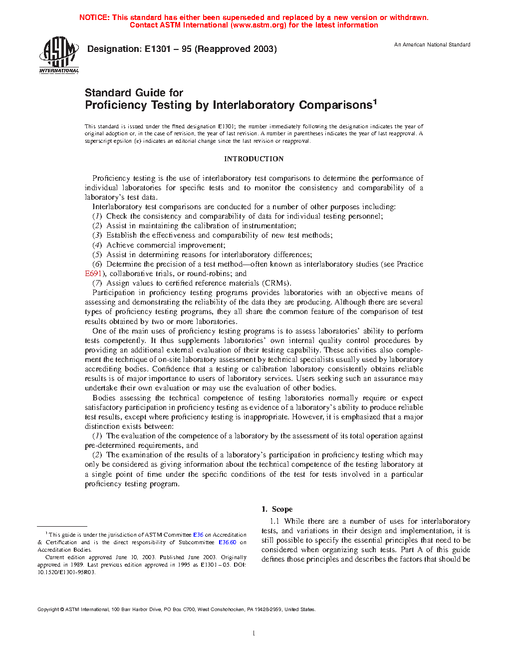 1.5 The methods of operation within different proficiency testing organizations are not expected to be identical and this guide does not give specific operational details for interlaboratory test comparisons. It does, however, cover both measurement comparison and testing programs in which large numbers of laboratories (over 20) or small groups of laboratories (1 to 20) are tested. Therefore, the contents of this guide are intended only as a framework to be modified appropriately for particular situations.