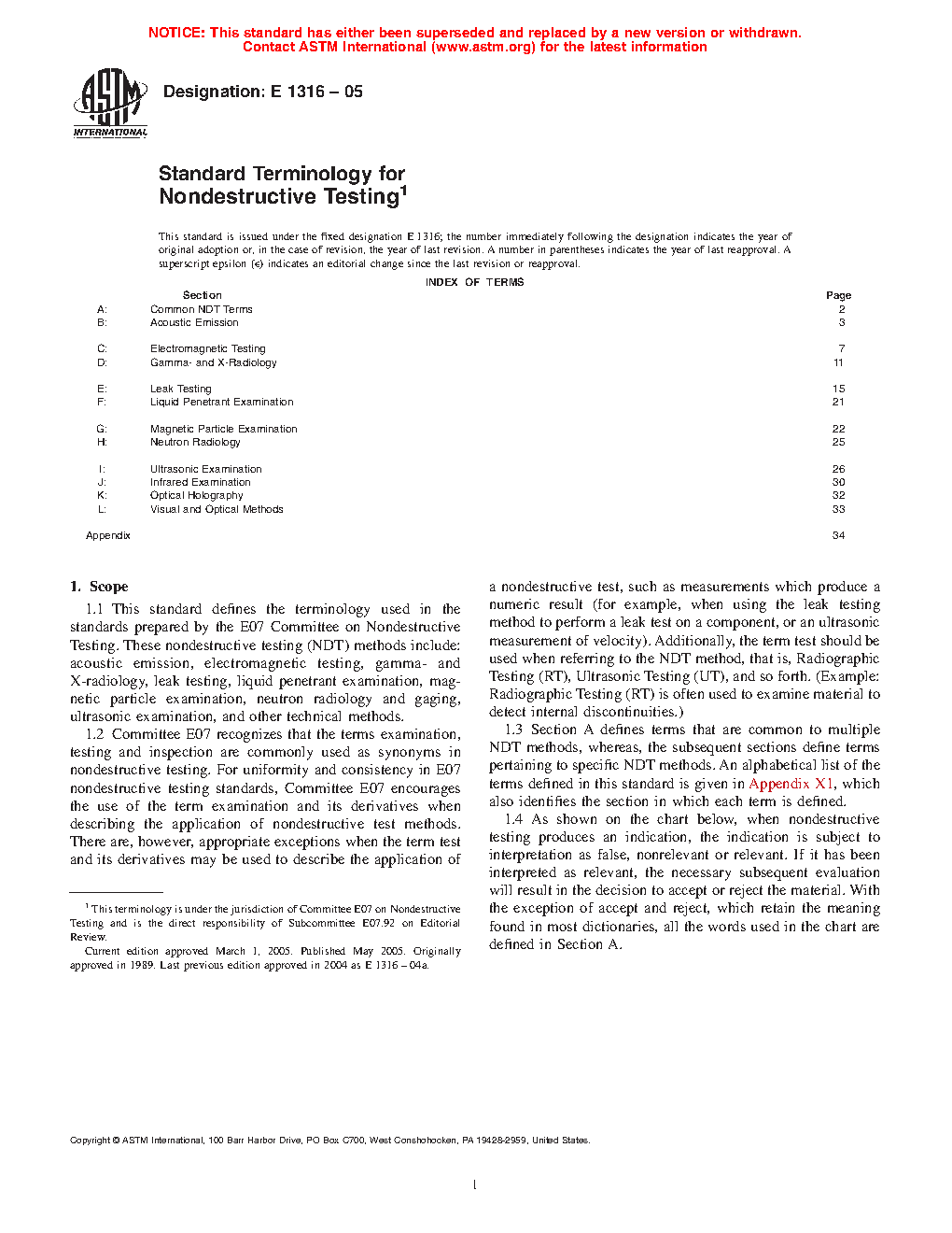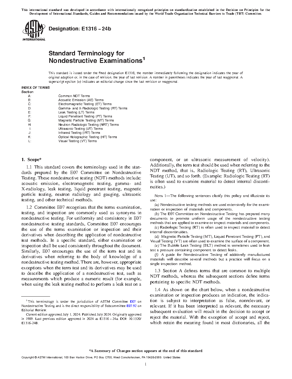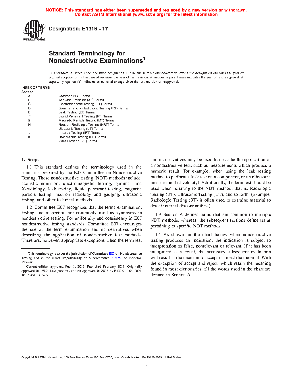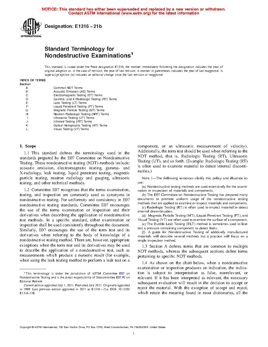 1.3 Section A defines terms that are common to multiple NDT methods, whereas, the subsequent sections define terms pertaining to specific NDT methods.