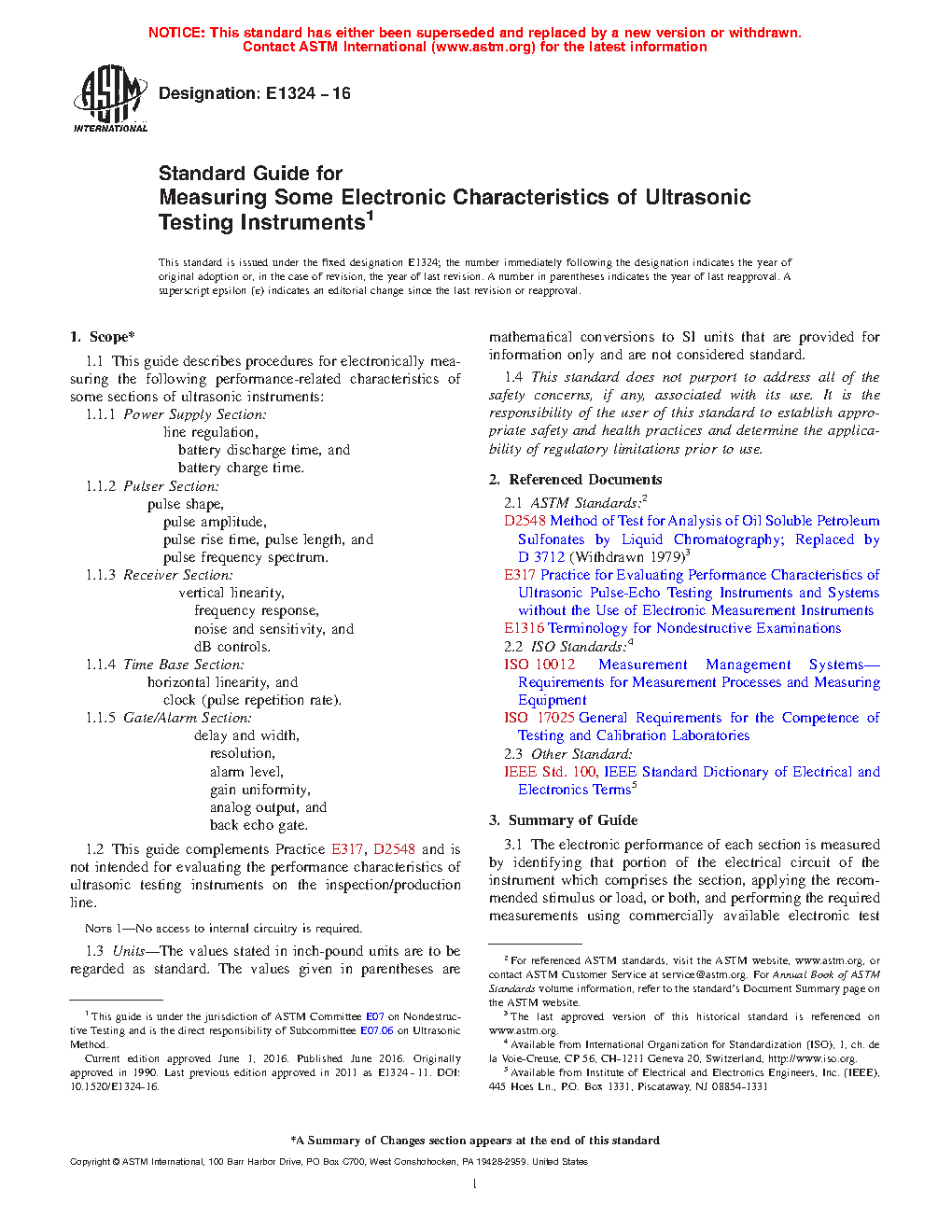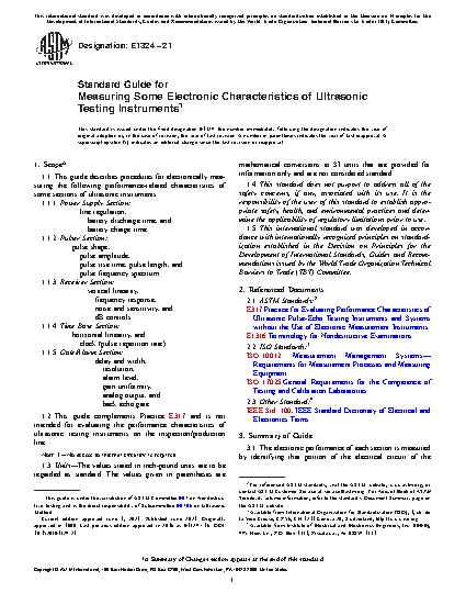 1.2 This guide complements Practice E317, and is not intended for evaluating the performance characteristics of ultrasonic examination instruments on the inspection/production line.