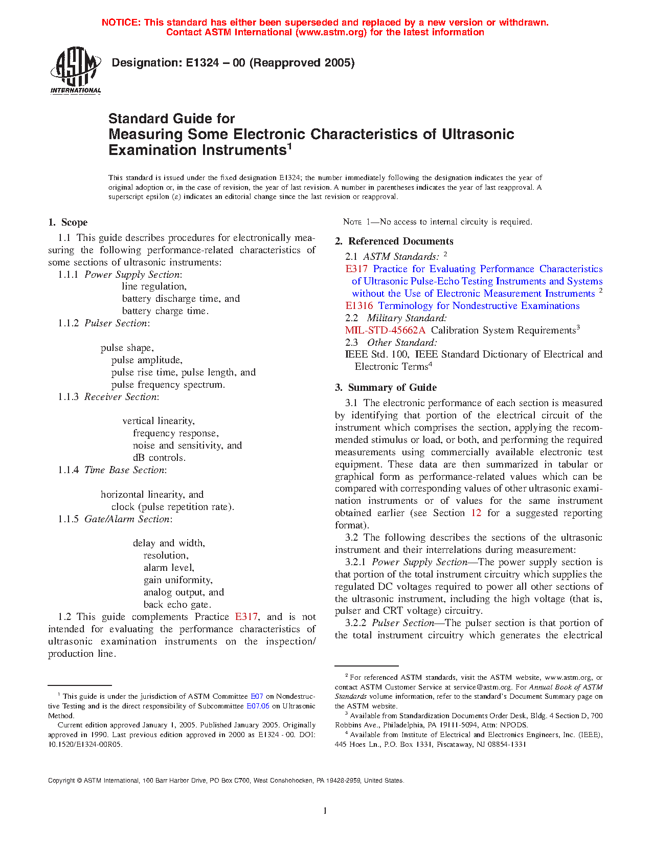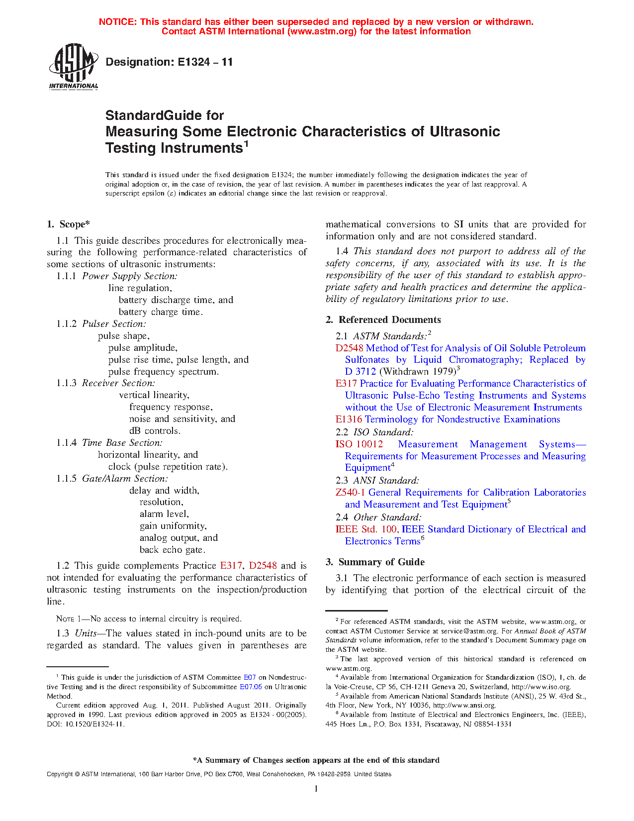 1.1 This guide describes procedures for electronically measuring the following performance-related characteristics of some sections of ultrasonic instruments: