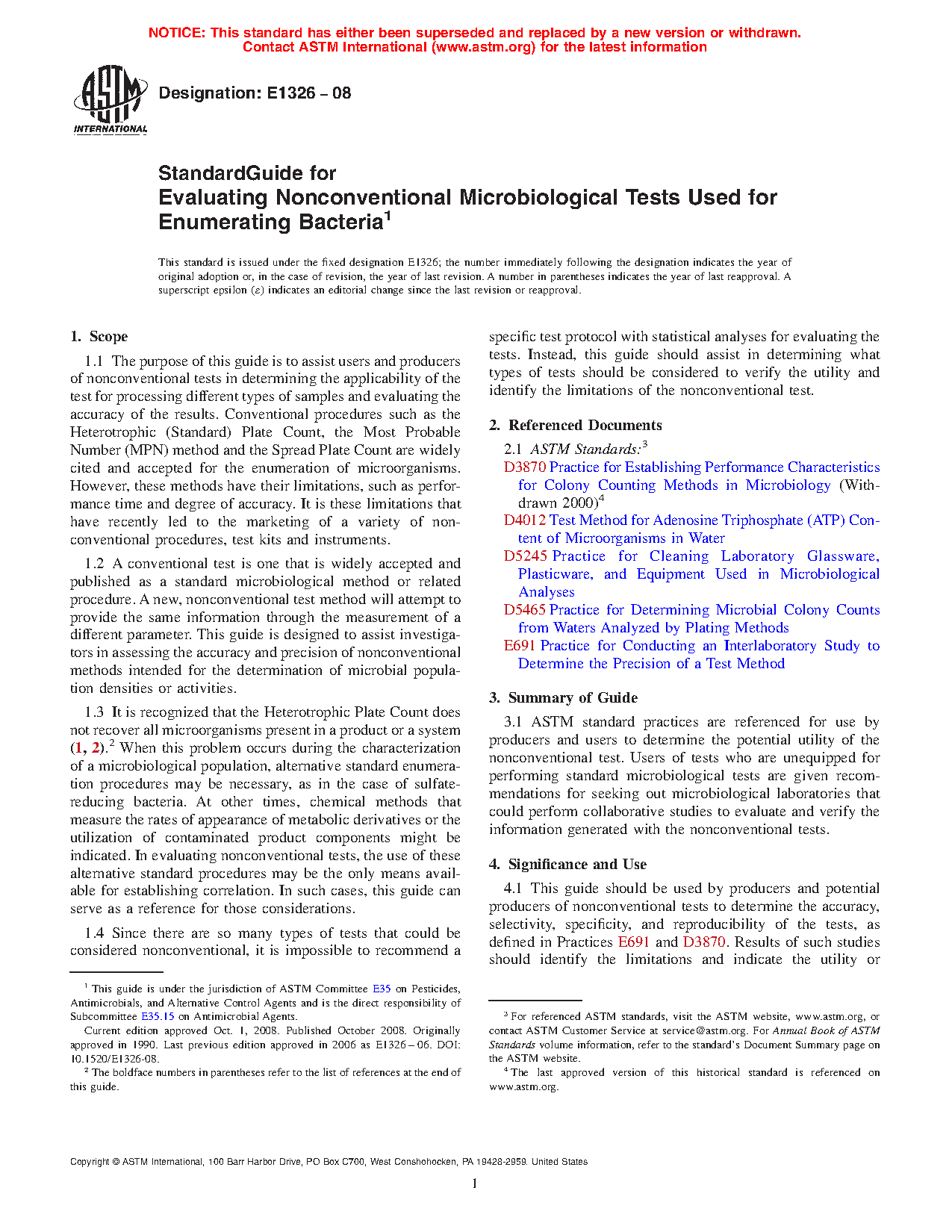1.3 It is recognized that the heterotrophic plate count (HPC) does not recover all microorganisms present in a product or a system (1, 2).2 When this problem occurs during the characterization of a microbiological population, alternative standard enumeration procedures may be necessary, as in the case of sulfate-reducing bacteria. At other times, chemical methods that measure the rates of appearance of metabolic derivatives, the utilization of contaminated product components or genetic profile of the microbial population might be indicated. In evaluating non-culture tests, it is possible that the use of these alternative standard procedures might be the only means available for establishing correlation. In such cases, this guide can serve as a reference for those considerations.