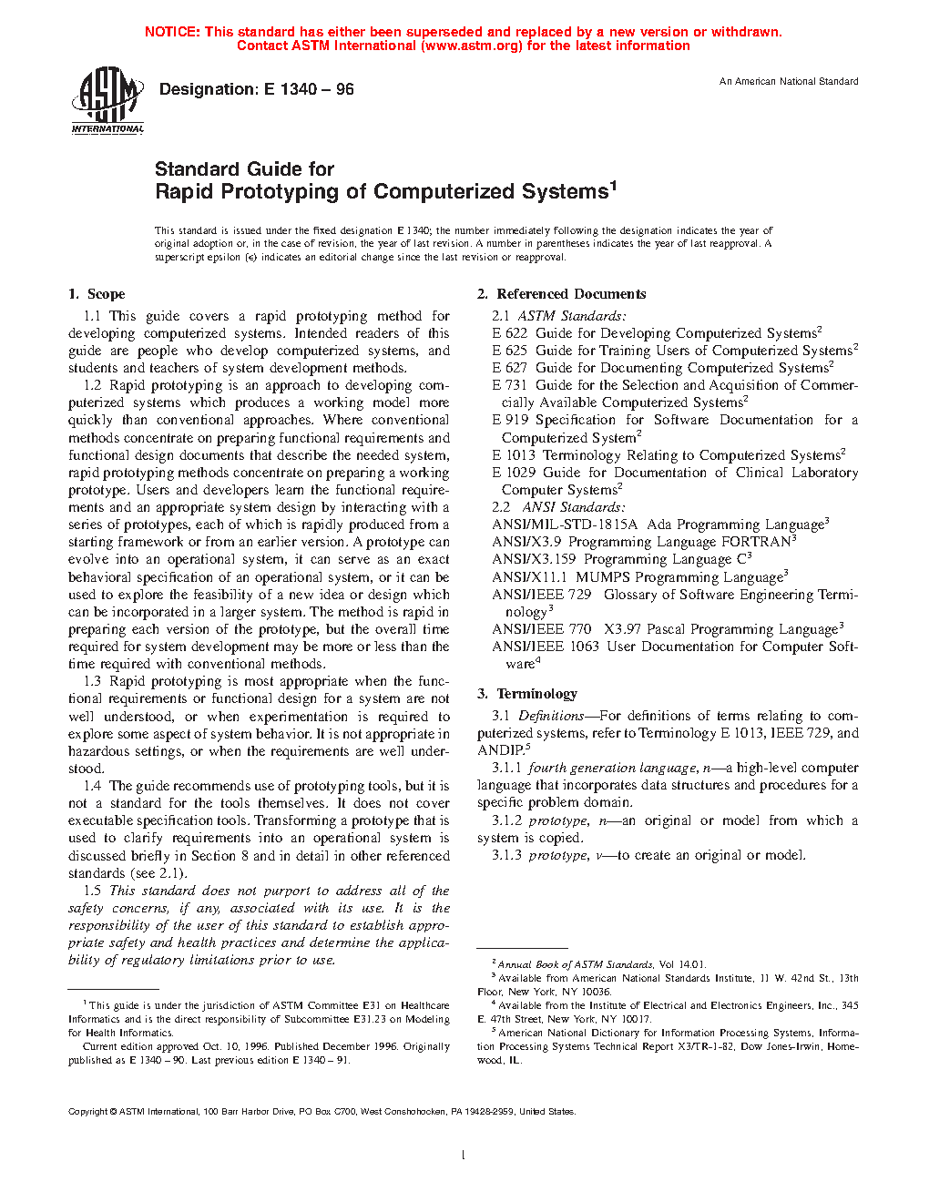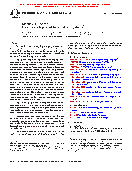 1.4 The guide recommends use of prototyping tools, but it is not a standard for the tools themselves. It does not cover executable specification tools. Transforming a prototype that is used to clarify Requirements into an operational system is discussed briefly in Section 8 and in detail in other referenced standards (see 2.1).