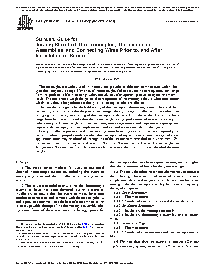 1.1 This guide covers methods for users to test metal sheathed thermocouple assemblies, including the extension wires, just prior to, and after installation or some period of service.