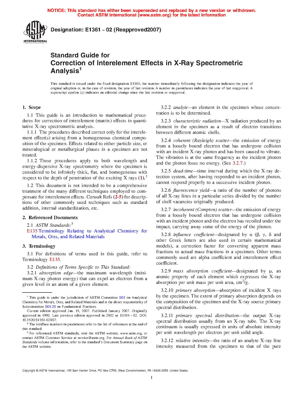 1.1.2 These procedures apply to both wavelength and energy-dispersive X-ray spectrometry where the specimen is considered to be infinitely thick, flat, and homogeneous with respect to the depth of penetration of the exciting X-rays (1).2