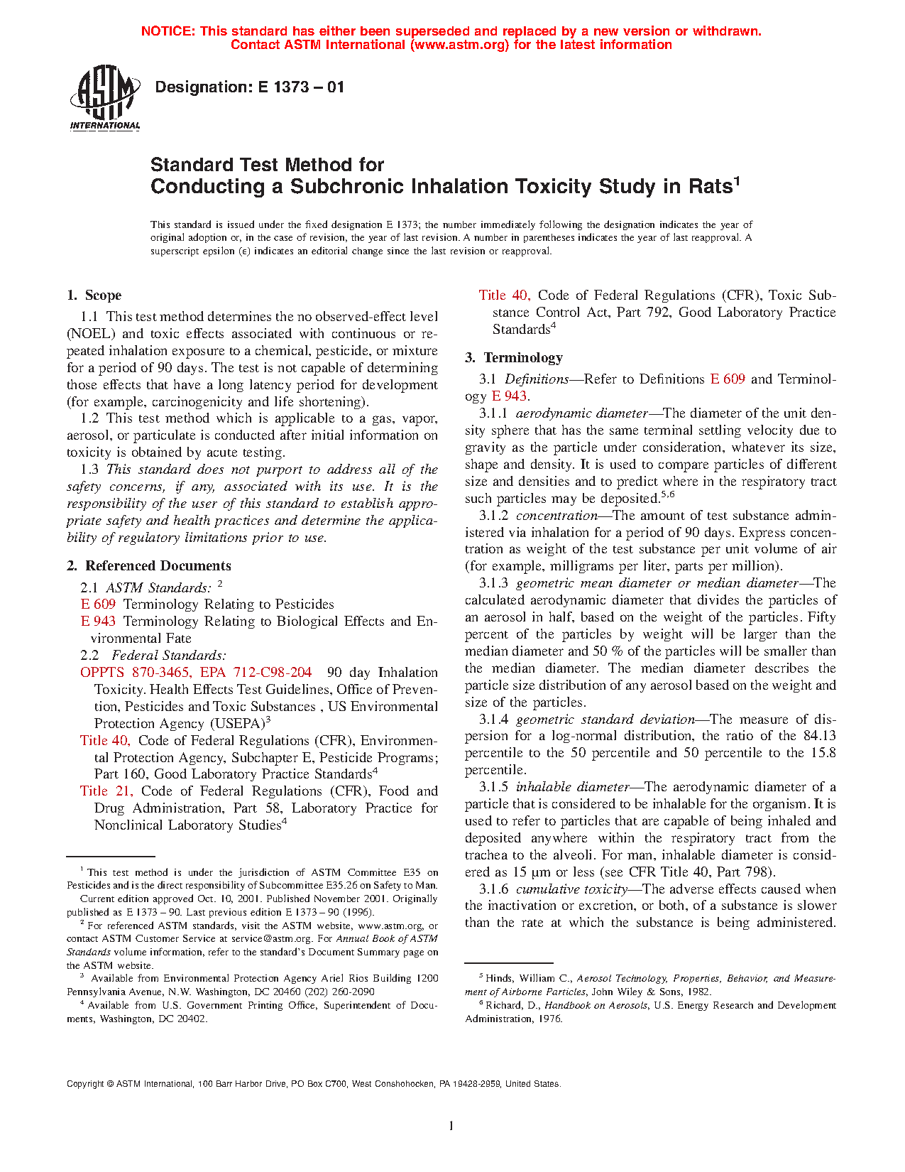 1.2 This test method which is applicable to a gas, vapor, aerosol, or particulate is conducted after initial information on toxicity is obtained by acute testing.