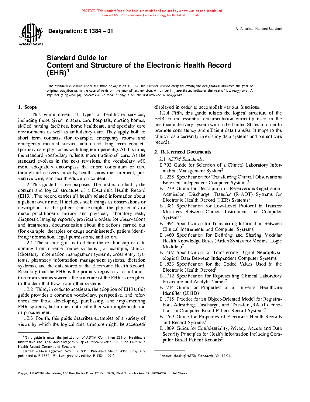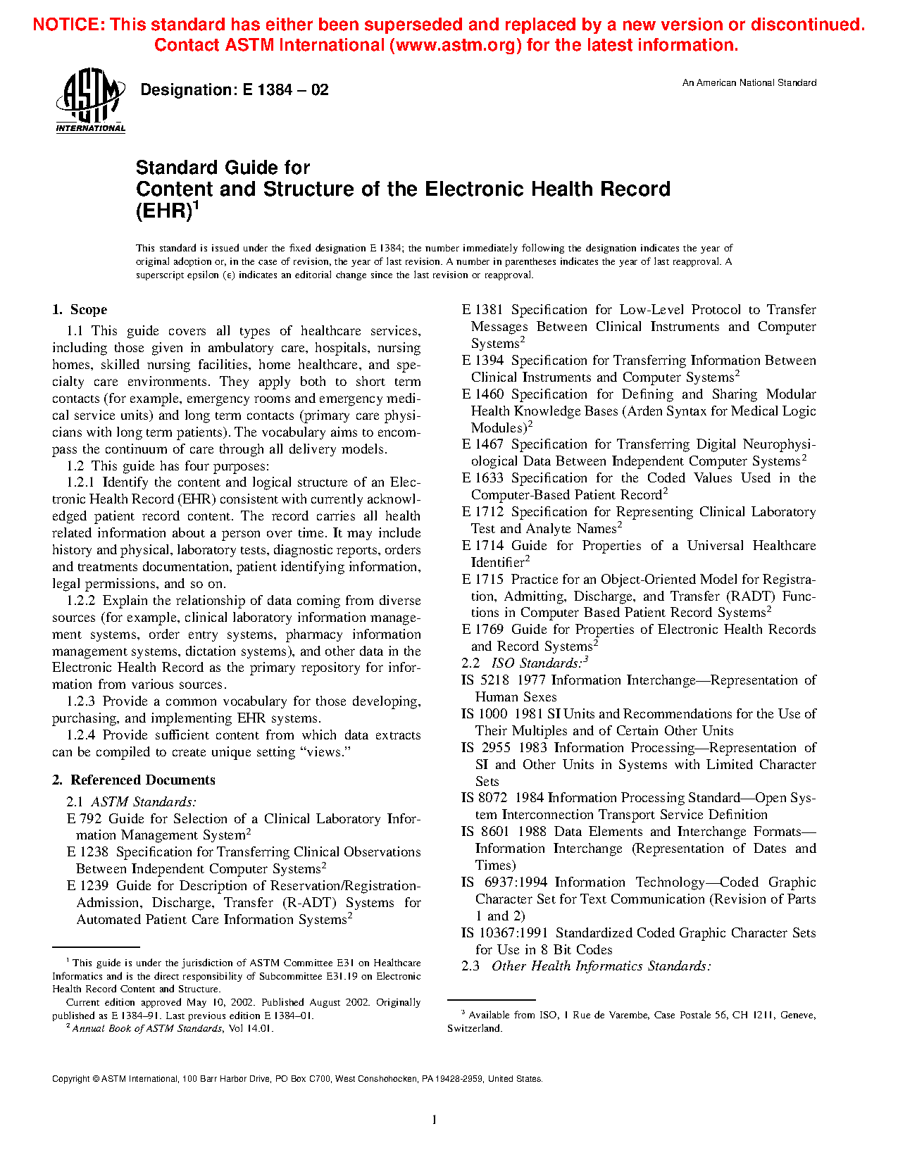 1.1 This guide covers all types of healthcare services, including those given in acute care hospitals, nursing homes, skilled nursing facilities, home healthcare, and specialty care environments as well as ambulatory care. They apply both to short term contacts (for example, emergency rooms and emergency medical service units) and long term contacts (primary care physicians with long term patients). At this time, the standard vocabulary reflects more traditional care. As the standard evolves in the next revisions, the vocabulary will more adequately encompass the entire continuum of care through all delivery models, health status measurement, preventive case, and health education content.