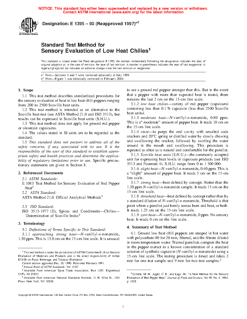 1.2 This test method is intended as an alternative to the Scoville heat test (see ASTA Method 21.0 and ISO 3513), but results can be expressed in Scoville heat units (S.H.U.).