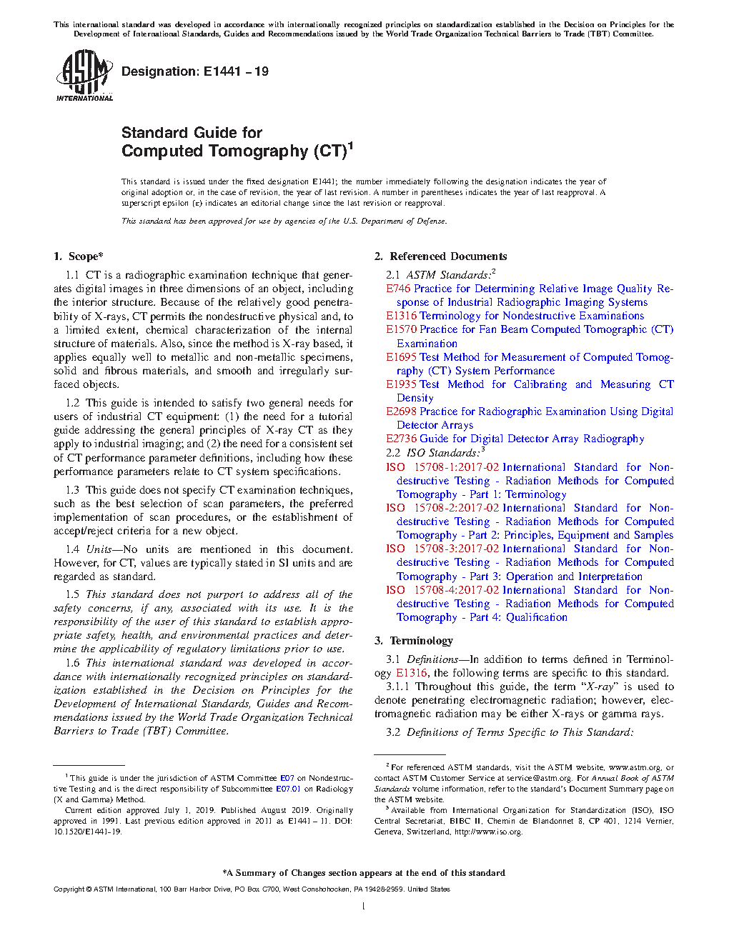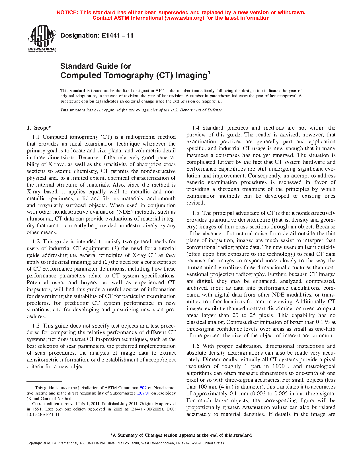 1.2 This guide is intended to satisfy two general needs for users of industrial CT equipment: (1) the need for a tutorial guide addressing the general principles of X-ray CT as they apply to industrial imaging; and (2) the need for a consistent set of CT performance parameter definitions, including how these performance parameters relate to CT system specifications. Potential users and buyers, as well as experienced CT inspectors, will find this guide a useful source of information for determining the suitability of CT for particular examination problems, for predicting CT system performance in new situations, and for developing and prescribing new scan procedures.