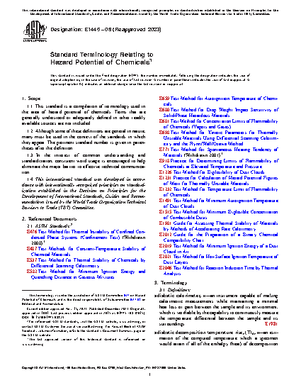 1.1 This standard is a compilation of terminology used in the area of hazard potential of chemicals. Terms that are generally understood or adequately defined in other readily available sources are not included.
