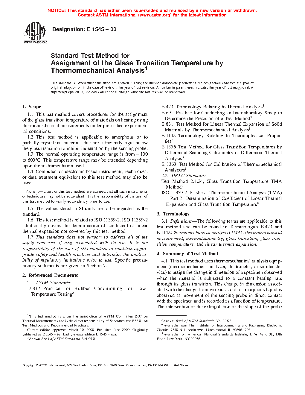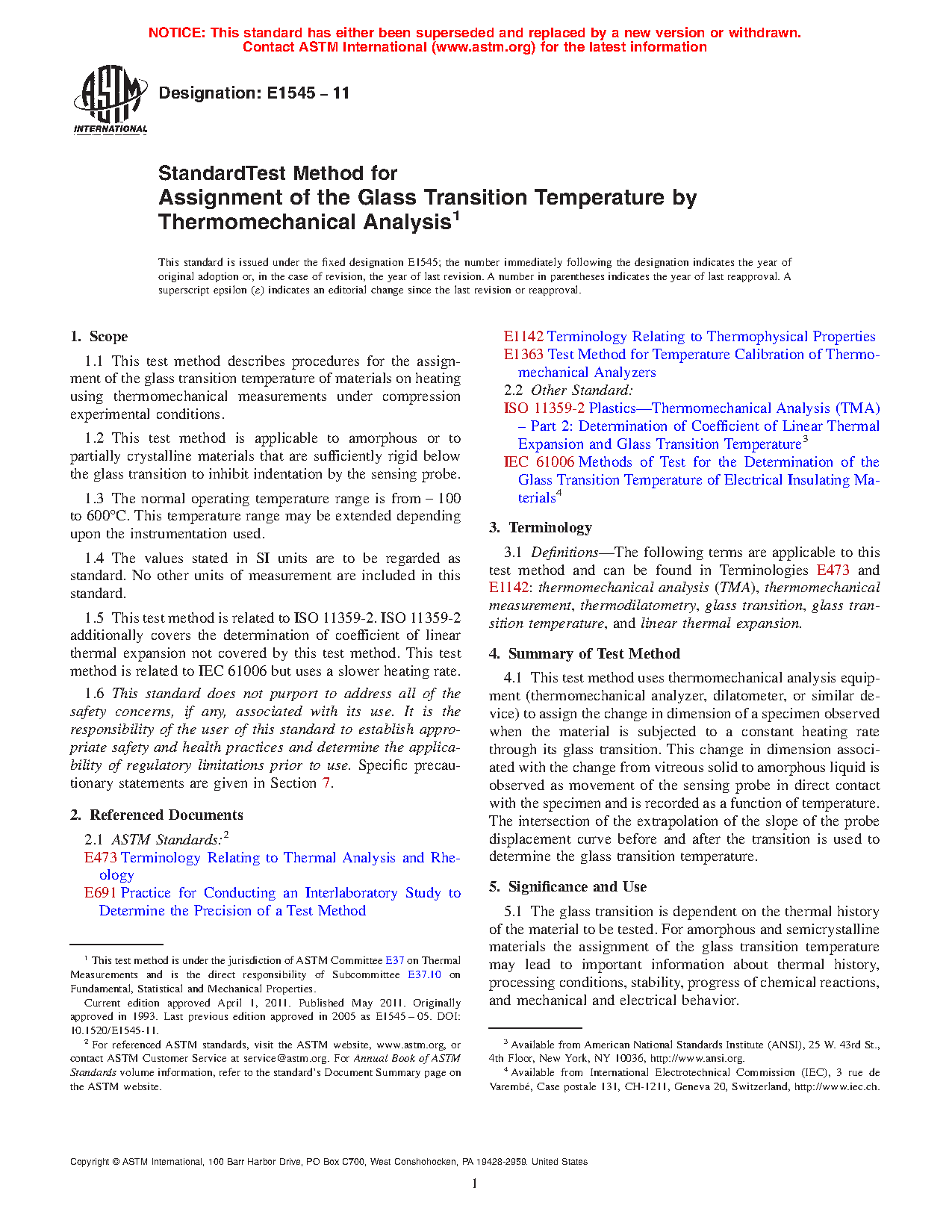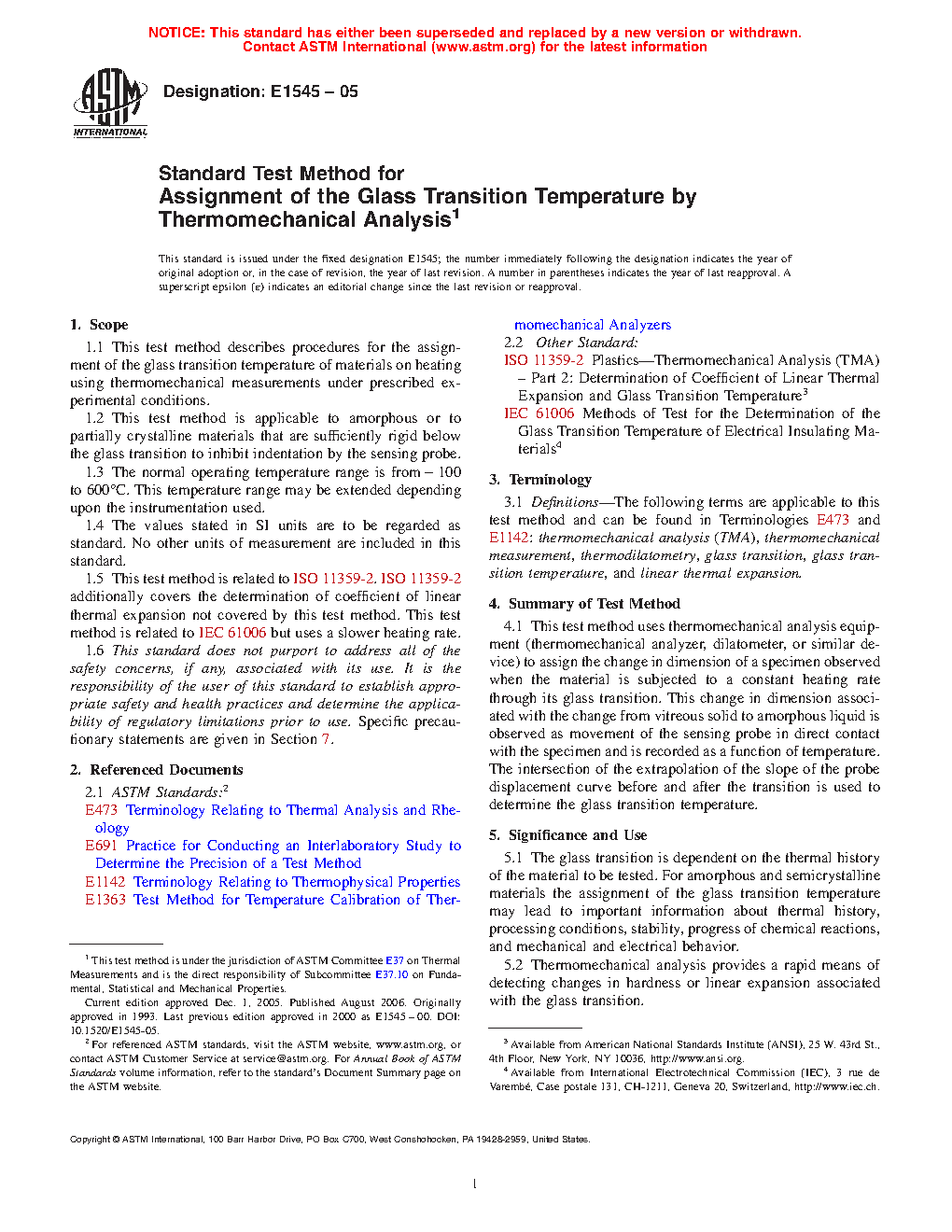1.5 This test method is related to ISO 11359-2. ISO 11359-2 additionally covers the determination of coefficient of linear thermal expansion not covered by this test method. This test method is related to IEC 61006 but uses a slower heating rate.