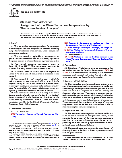 1.1 This test method describes procedures for the assignment of the glass transition temperature of materials on heating using thermomechanical measurements under compression experimental conditions.